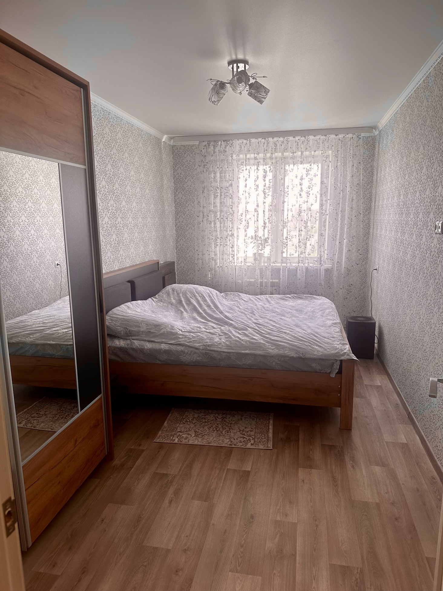 Светлая уютная 3х комнатная квартира. Очень теплая. Центральное отопление. Дом обшит утеплителем. Зал и 2 спальни выходят на солнечную сторону. Две отдельные гардеробные. Туалет и ванна отдельно. Имеется теплый пол при входе в квартиру и ванной.Для бесперебойной подачи горячей воды имеется водонагреватель, водонагреватель спрятан в стене в туалете. Сделан ремонт. Натяжные потолки, балкон. Из мебели остается: