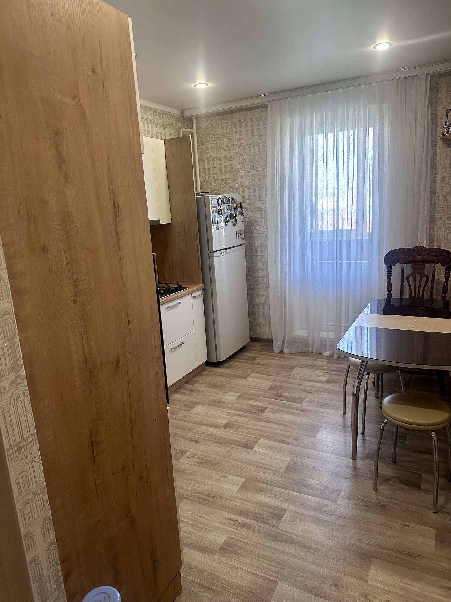 Кухня-кухонный гарнитур, холодильник, стол с 2 стульями, духовой шкаф Gorenje, газовая плита Gorenje;