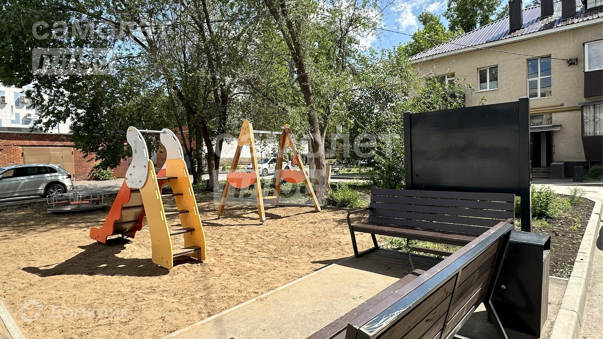 Благоустроенный двор, с современной детской и спортивной площадкой.