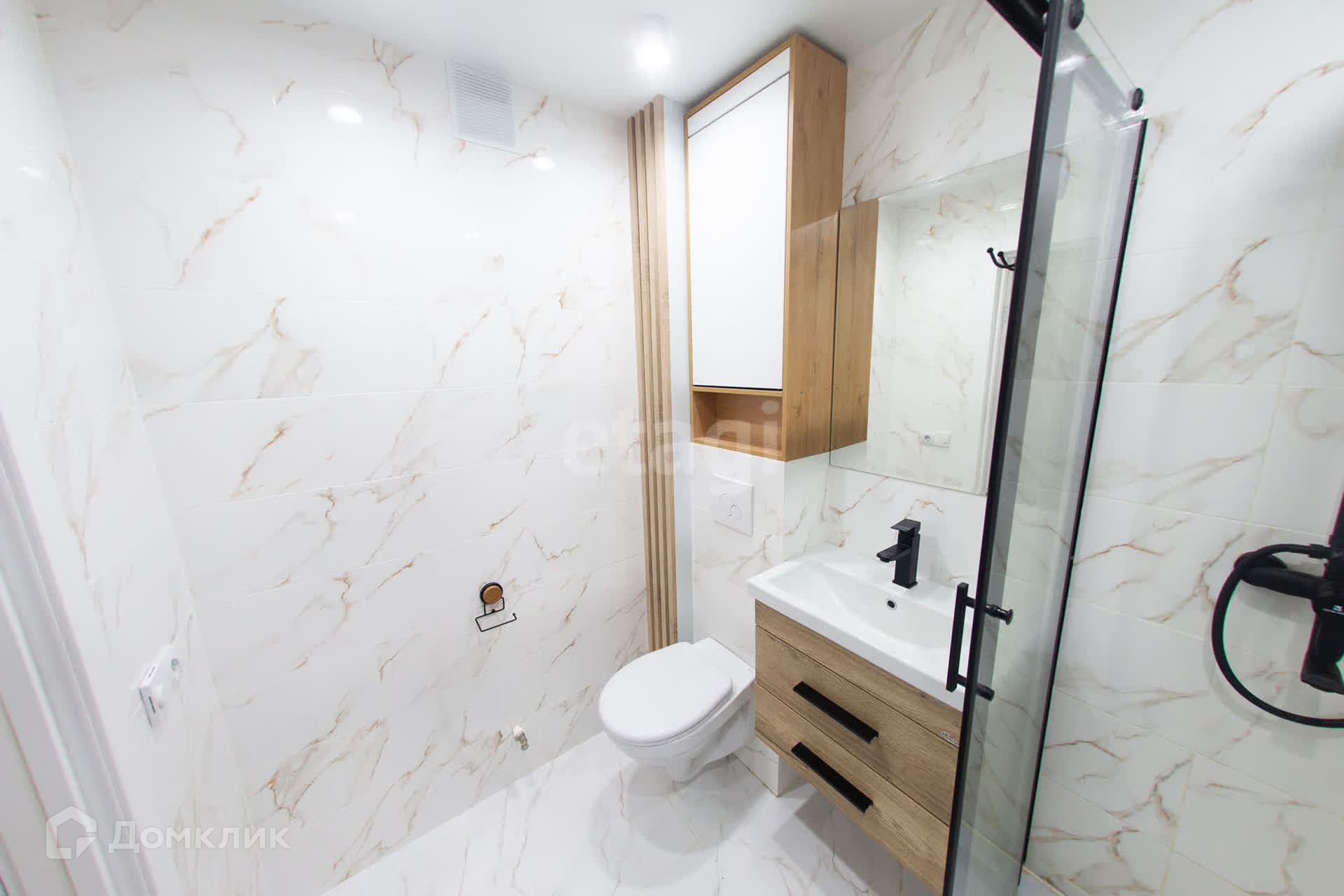 - стильный санузел с современной сантехникой