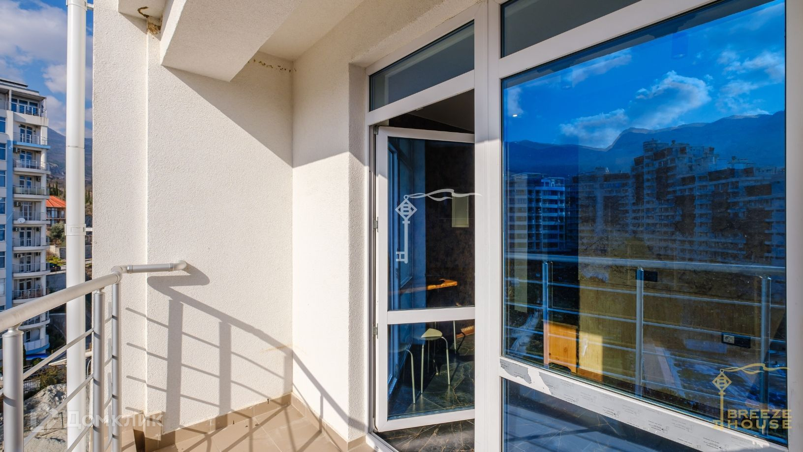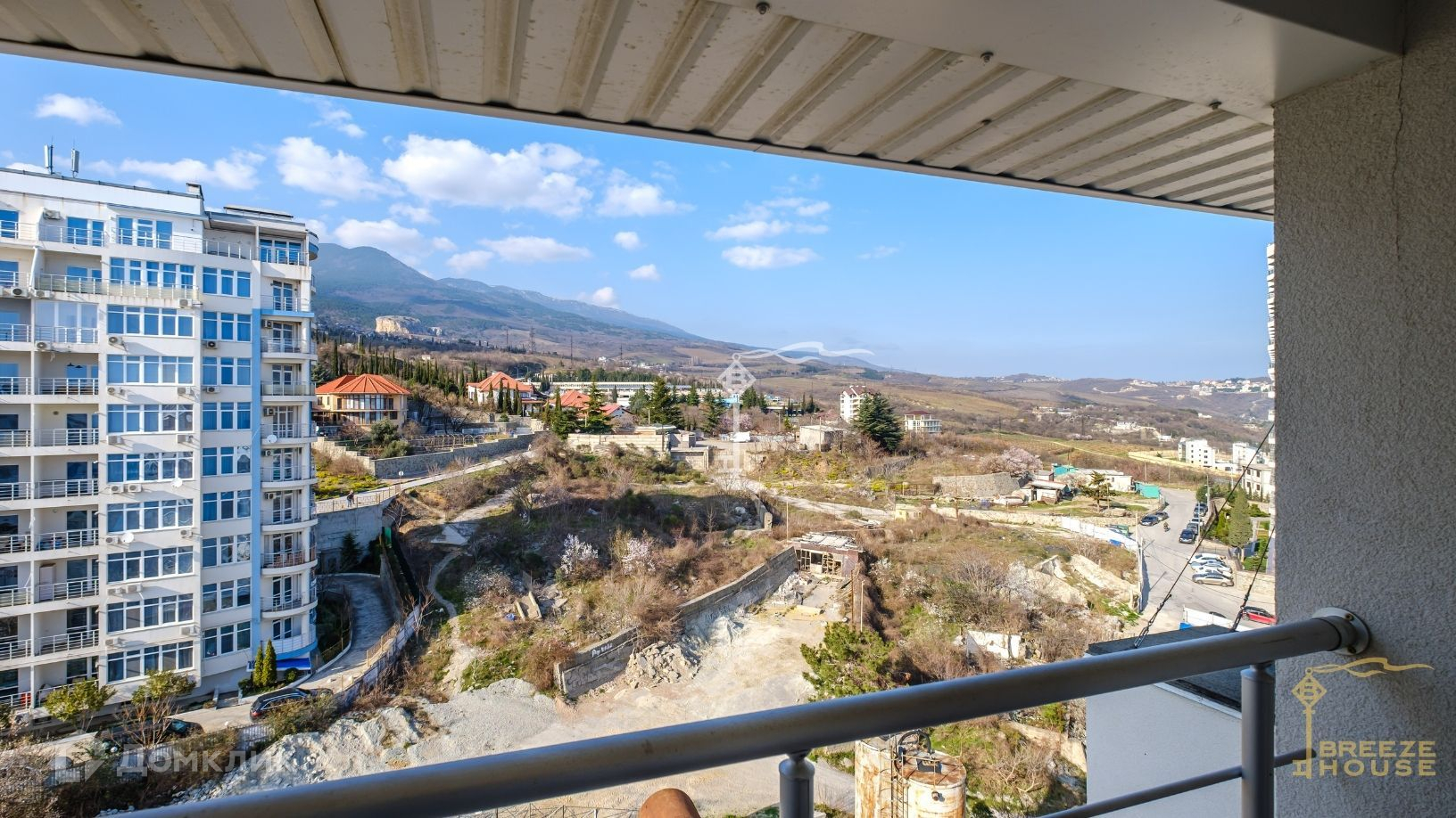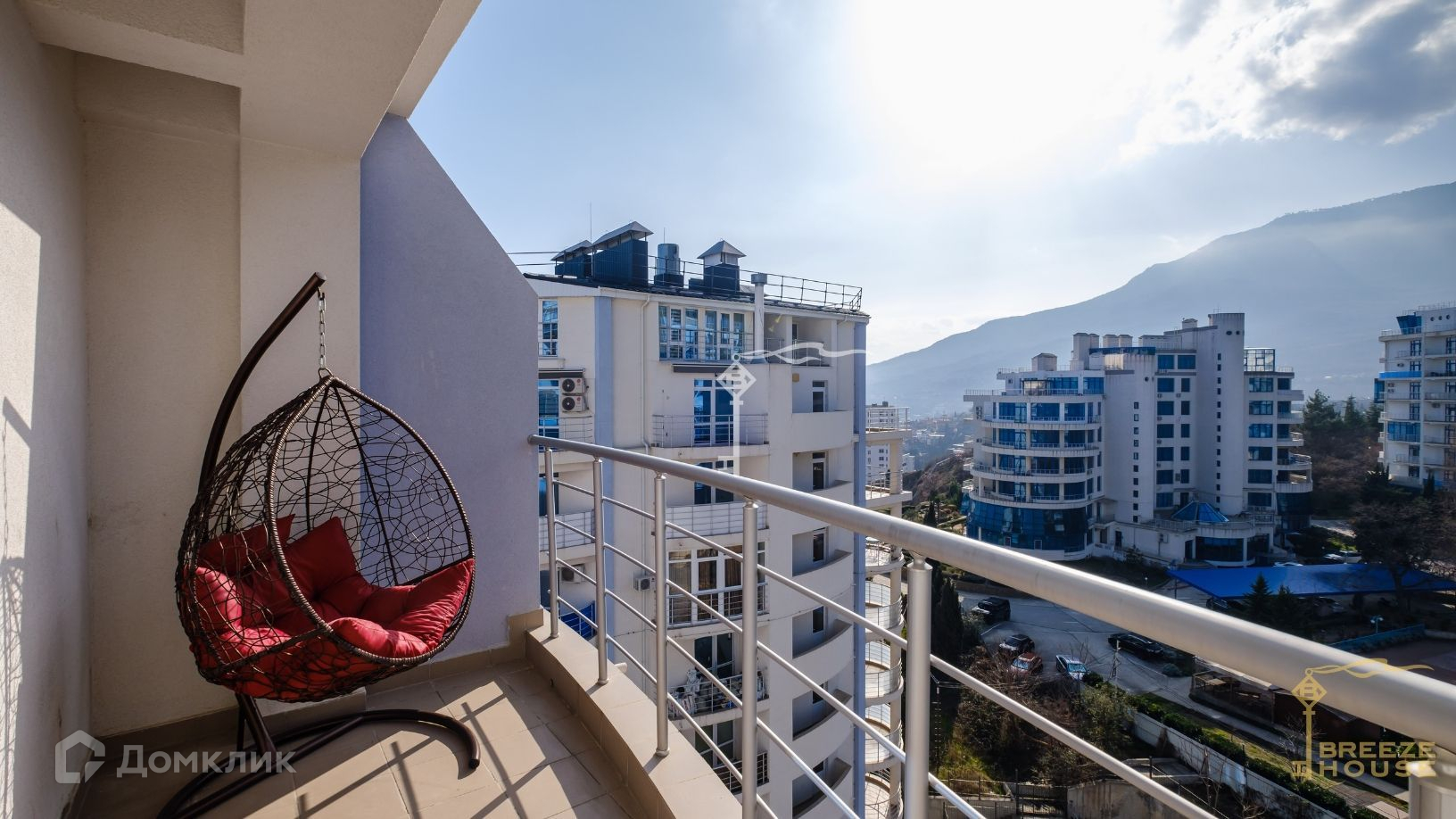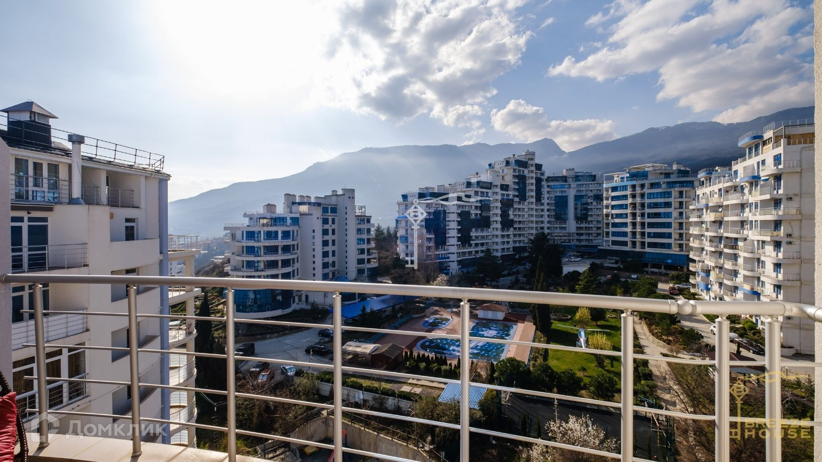 Квартира располагается на десятом и одиннадцатом этажах дома, благодаря чему из окон и террас открываются потрясающие виды на горы и живописный Гурзуф.