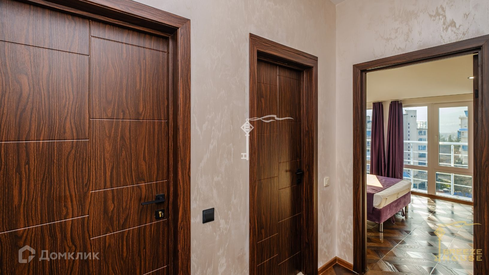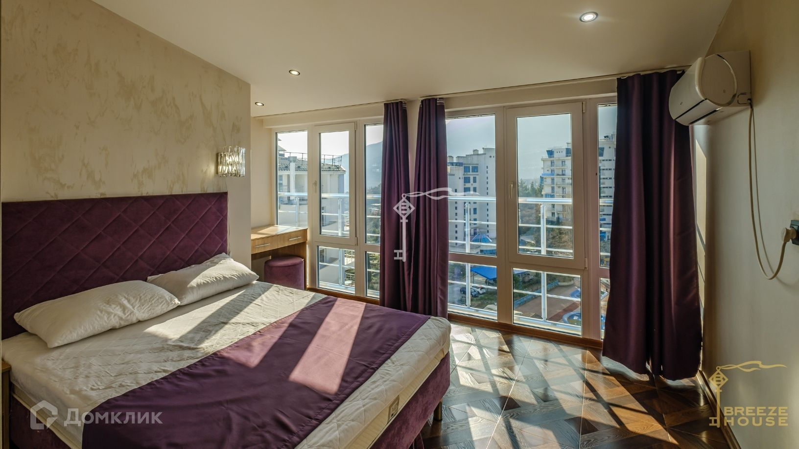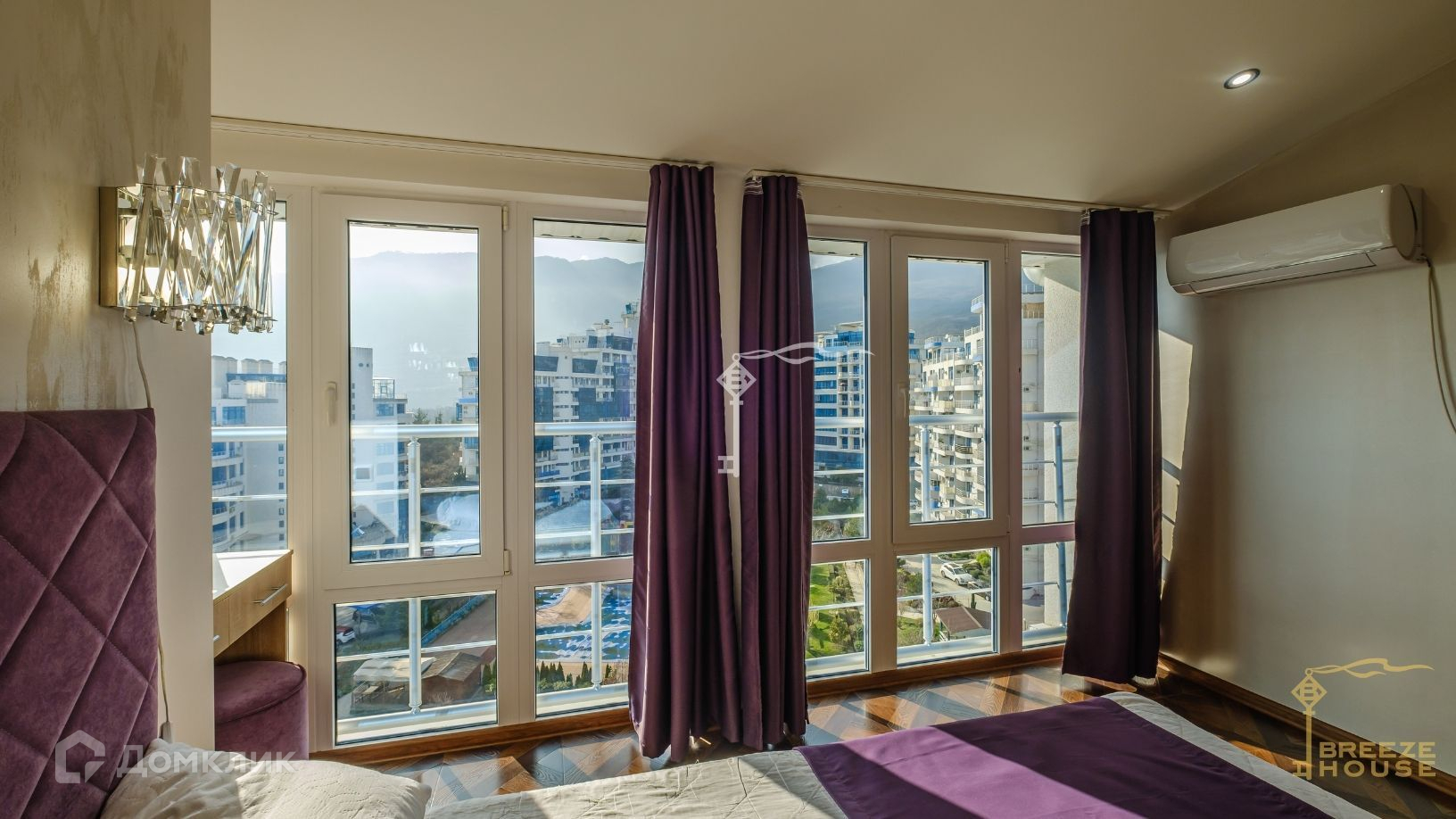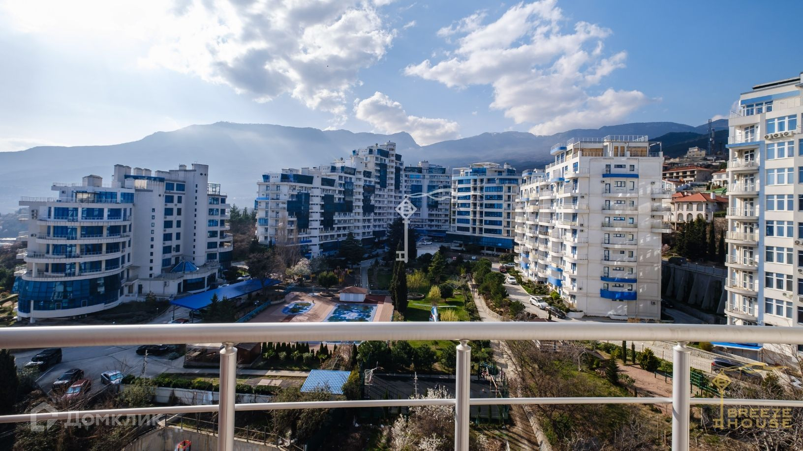 Квартира располагается на десятом и одиннадцатом этажах дома, благодаря чему из окон и террас открываются потрясающие виды на горы и живописный Гурзуф.