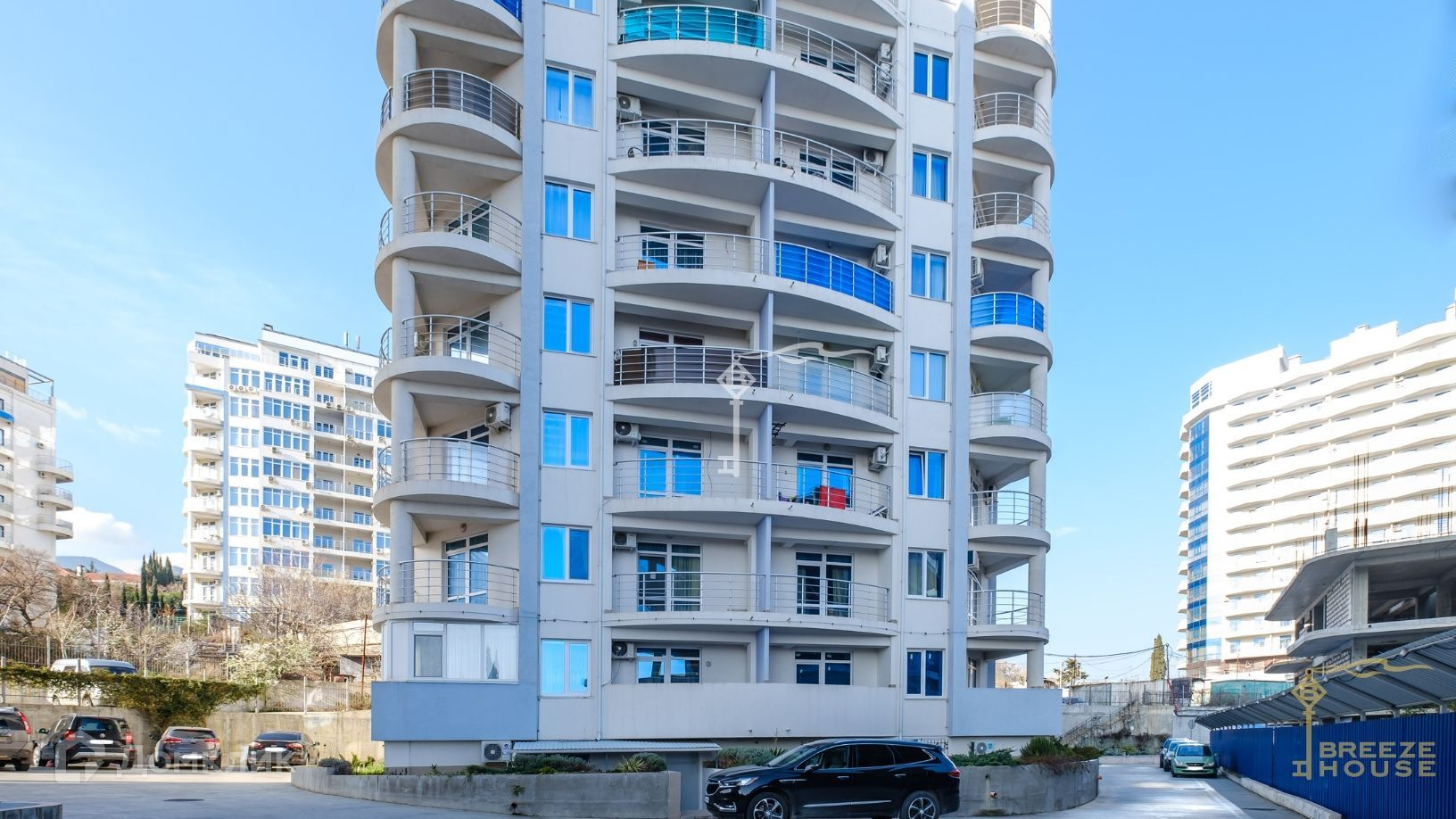 В пяти минутах ходьбы находится вся необходимая инфраструктура: несколько открытых бассейнов, в том числе и детский, спортзал, SPA-комплекс, несколько ресторанов, супермаркет «Соседи», детские площадки и остановка общественного транспорта.