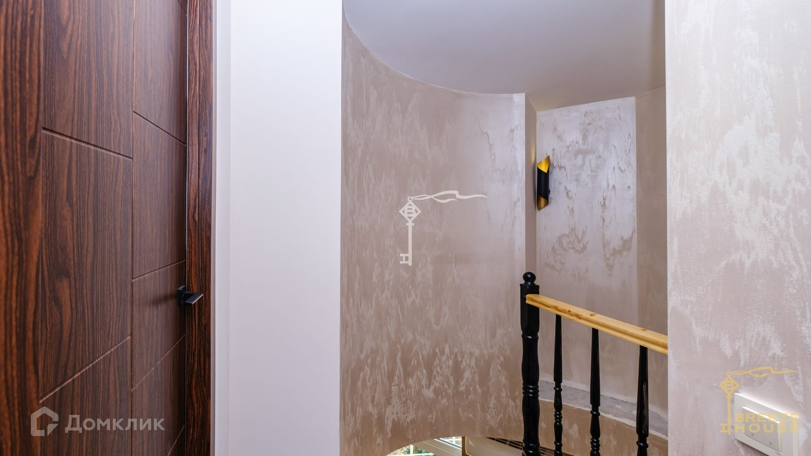 На 1 уровне расположена кухня с балконом, просторная гостиная с винтовой лестницей на второй этаж и выходом на террасу, санузел.