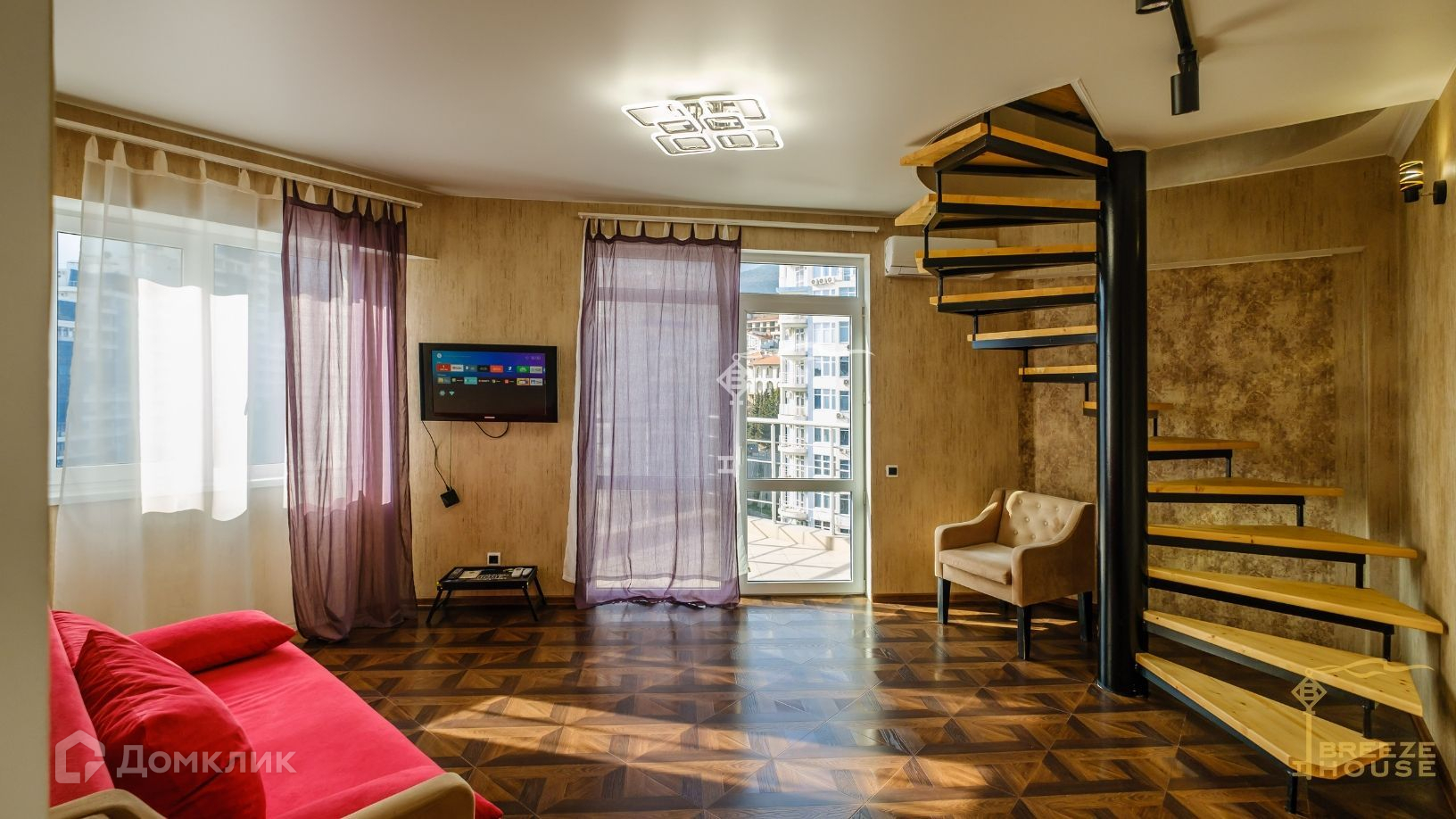 Продажа двухуровневой трехкомнатной квартиры с дизайнерским ремонтом и просторными террасами с панорамным видом на горы в жилом комплексе «Шале Ля Рош», в Гурзуфе.