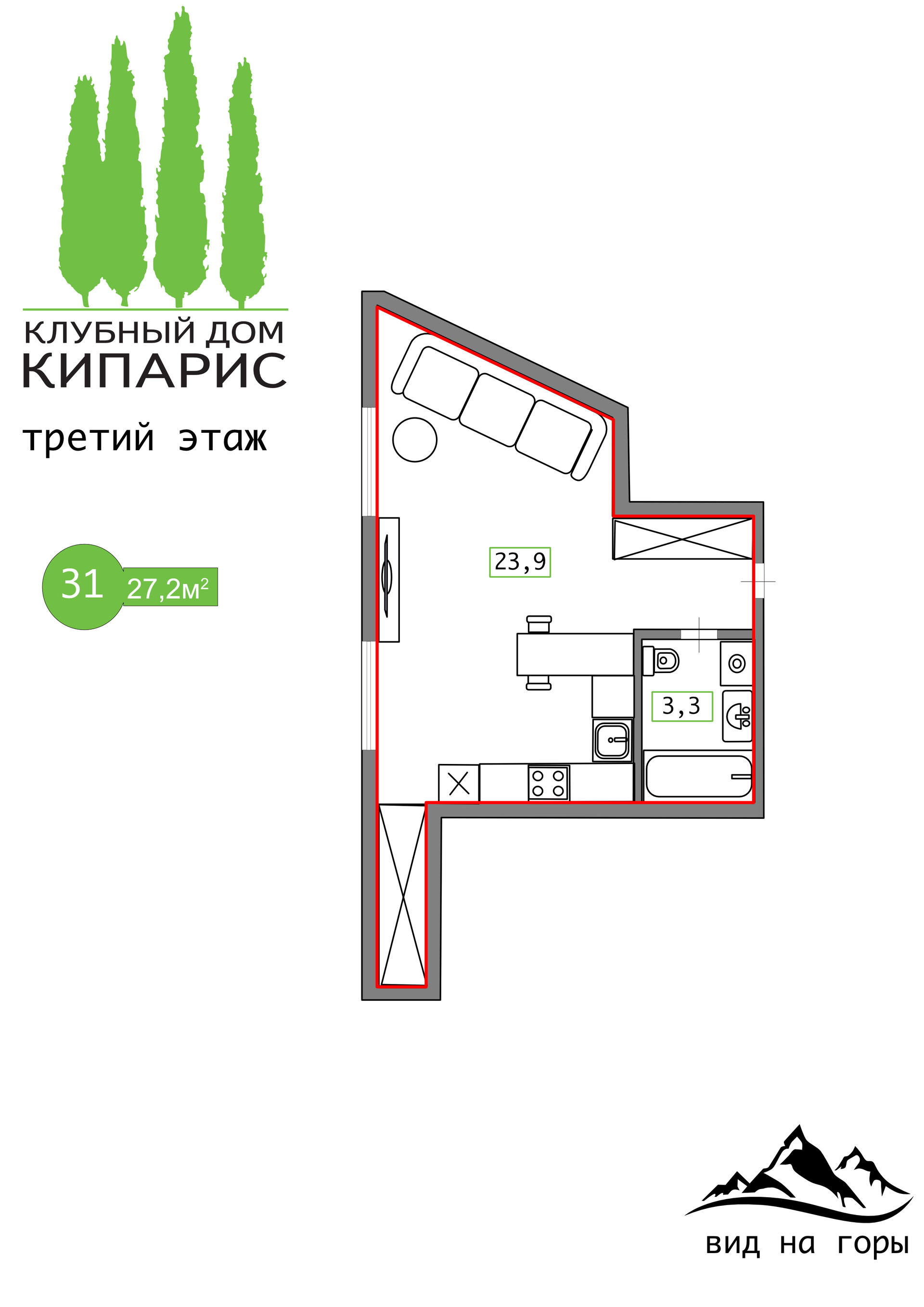 Апартаменты 26,2 кв. м на 3 этаже Клубного дома "Кипарис" по доступной цене у моря!