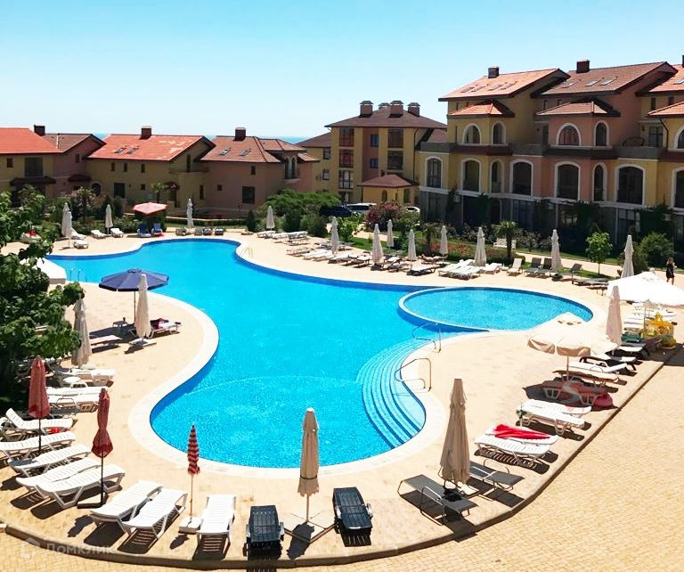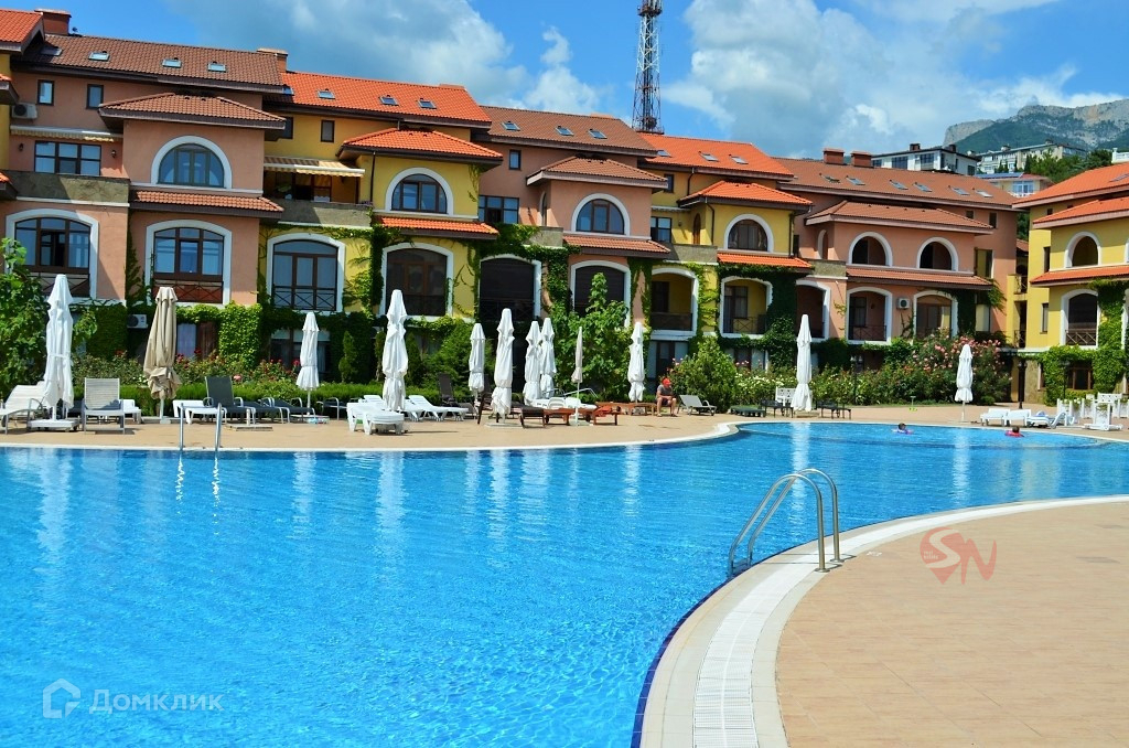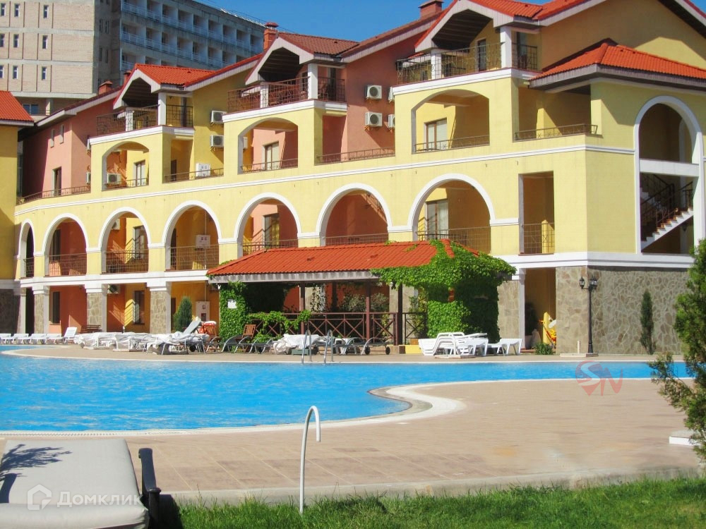 В апартаментах выполнен ремонт с отделкой дорогими, качественными материалами, полное оснащение  мебелью и техникой.  Из окон открываются живописные виды: небесно-голубая вода бассейна в сочетании с утопающими в зелени и цветах виллами в испанском стиле. У комплекса закрытая территория с круглосуточной охраной, парковка, трехуровневый бассейн, площадка для загара с шезлонгами, кафе. Благоустроенный пляж в 5 минутах ходьбы.
