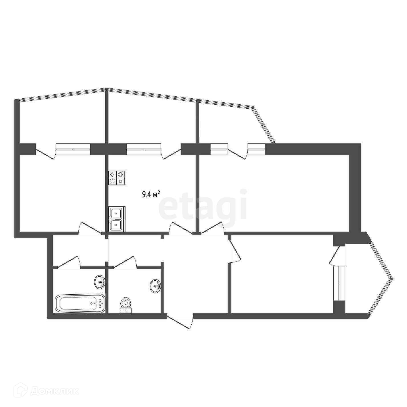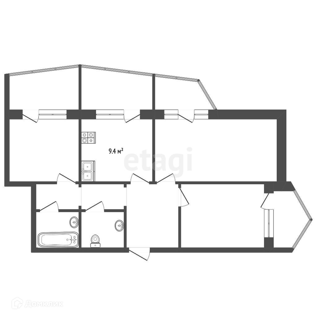 Площадь кухни 9.4 м2