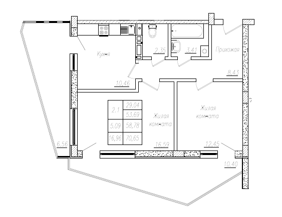 • Общая площадь 58,78 м2