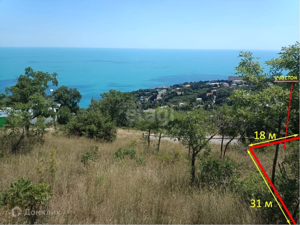 Продается видовой земельный участок в Алупке общей площадью 6 соток. Участок имеет небольшой уклон, расположен на возвышенности, благодаря чему имеет прекрасный вид на море и горы, начиная с первого этажа планируемой застройки.