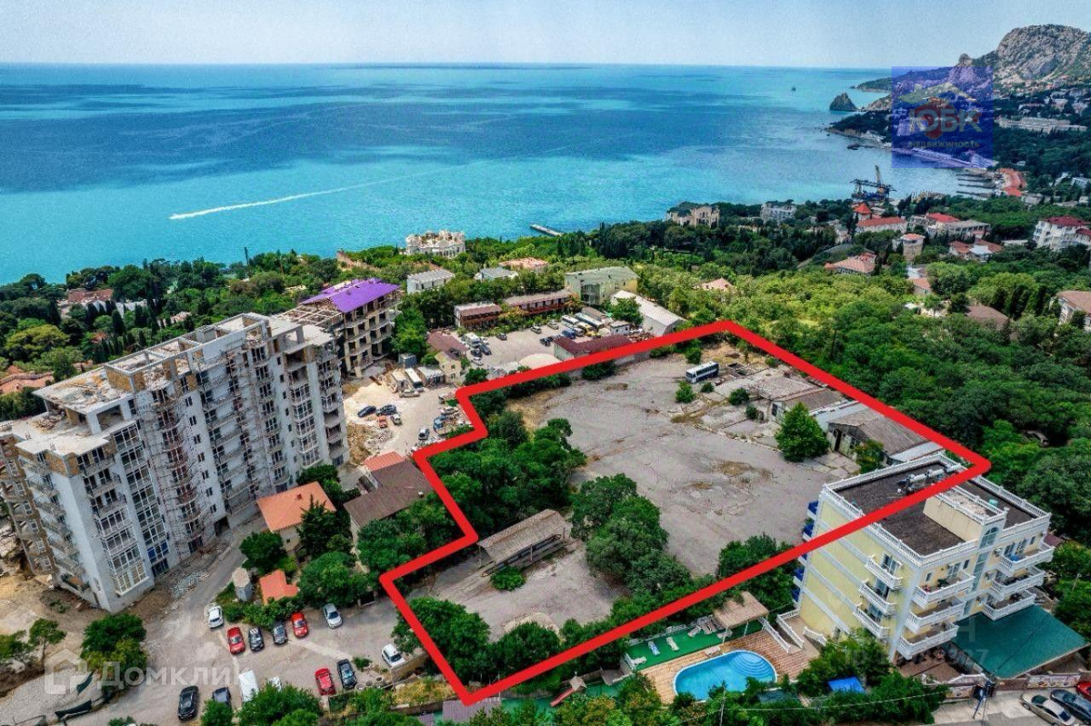 Продаётся земельный участок 81,4 сотки в г.Алупке для  cpeднeэтажной зacтpoйки.