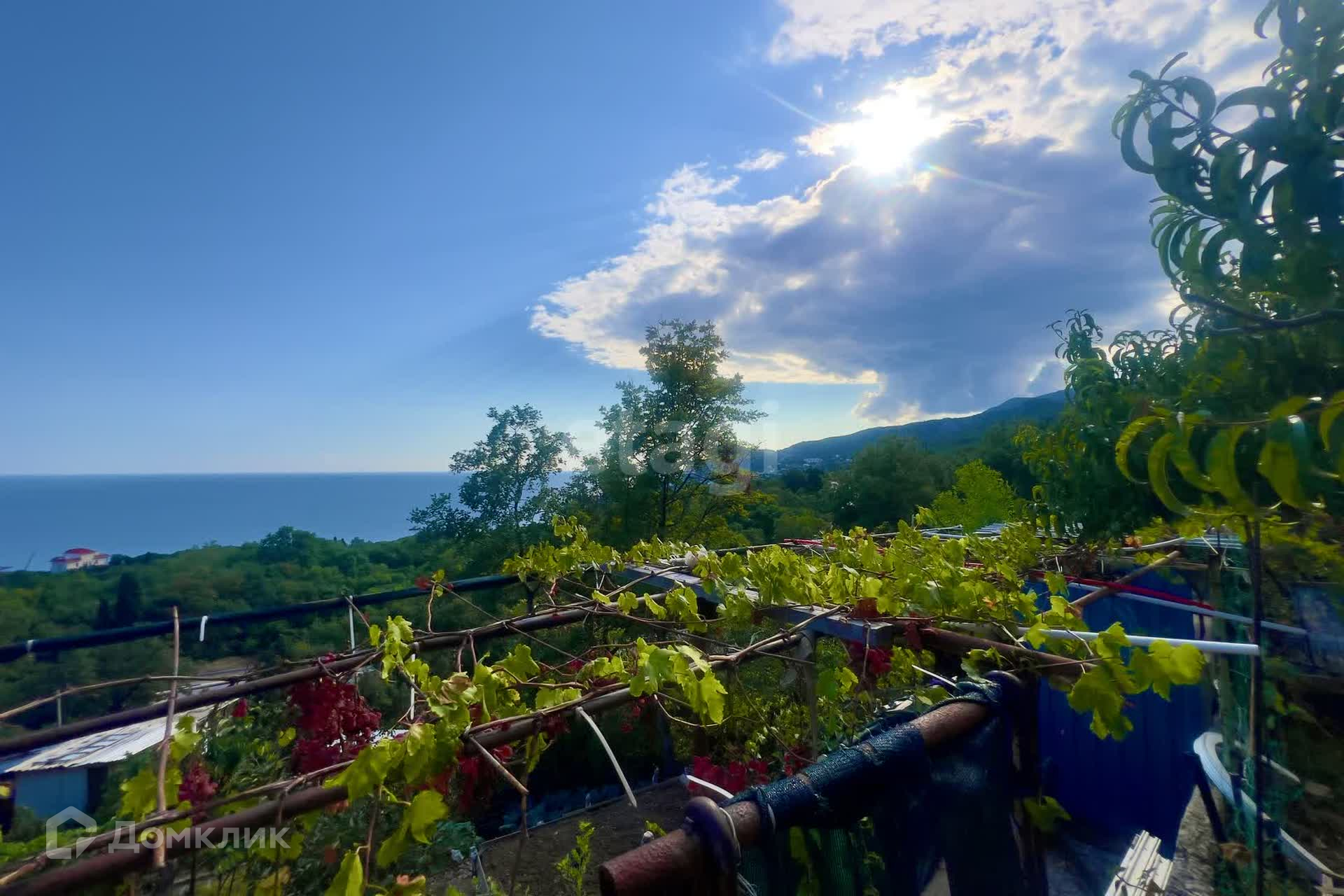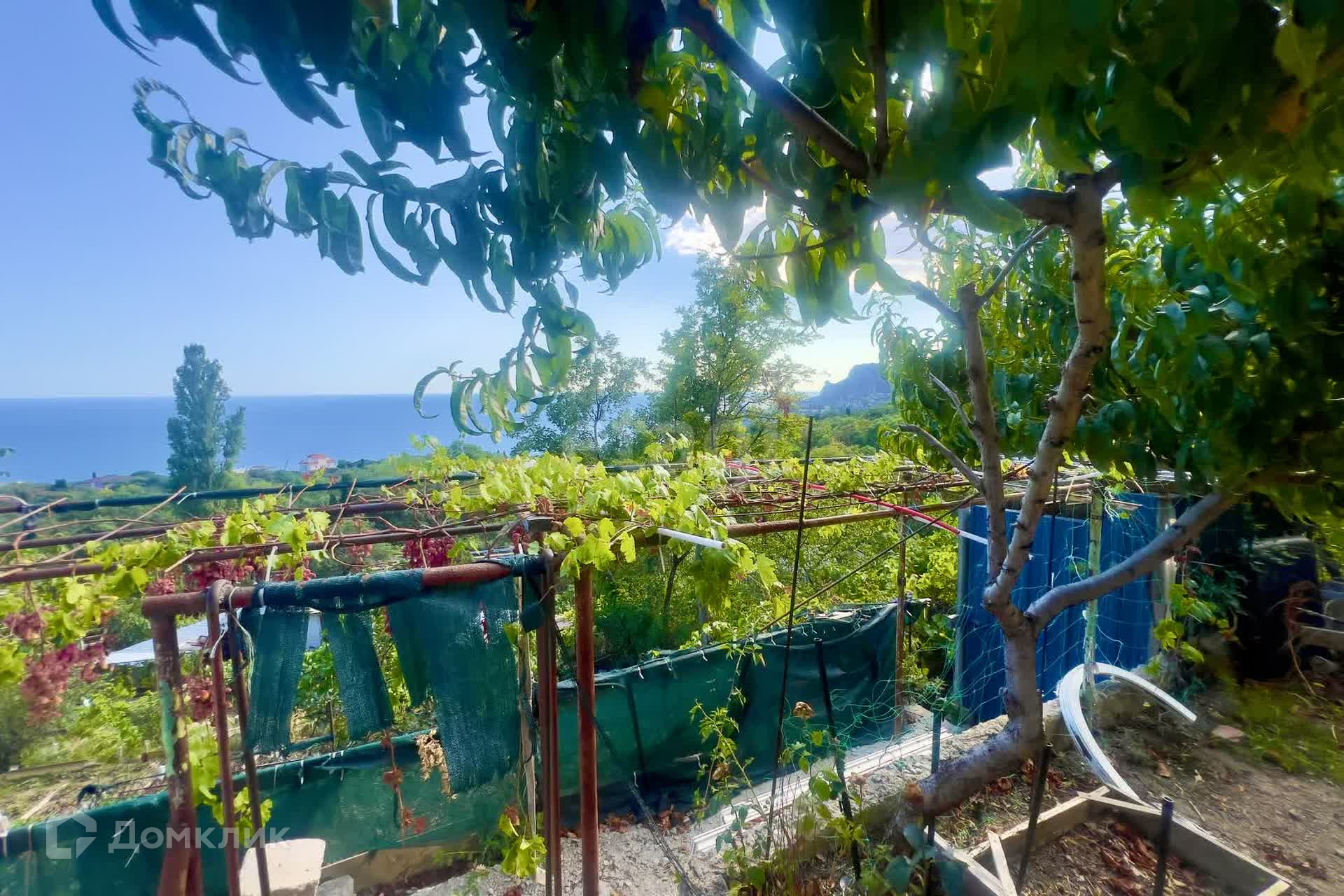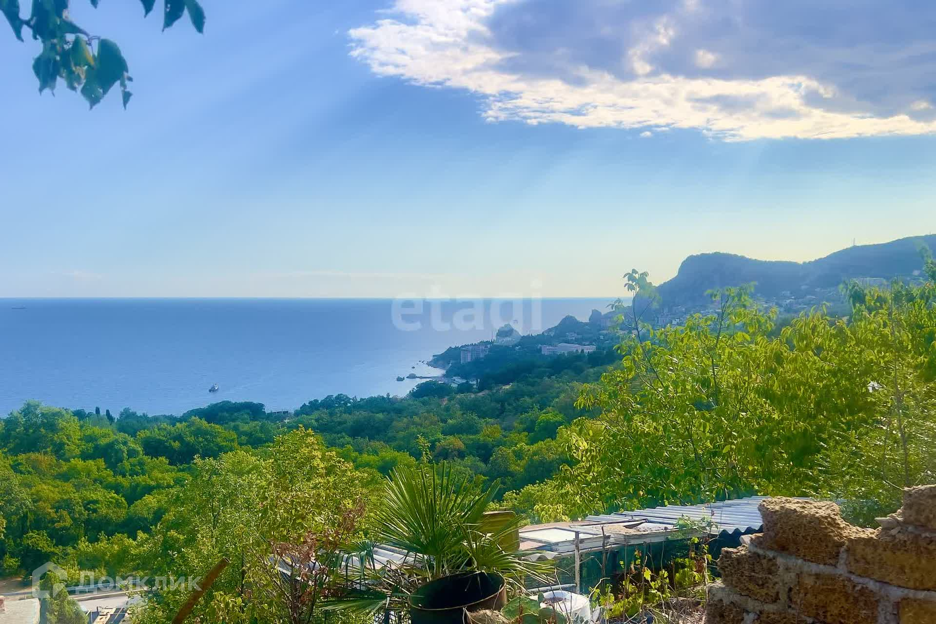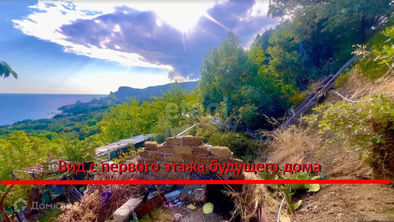 Уникальные видовые характеристики даже с нижней границы участка: морские просторы и побережье Алупки, панорама посёлка Симеиз, гора Кошка, скала Дива, побережье Кацивели.