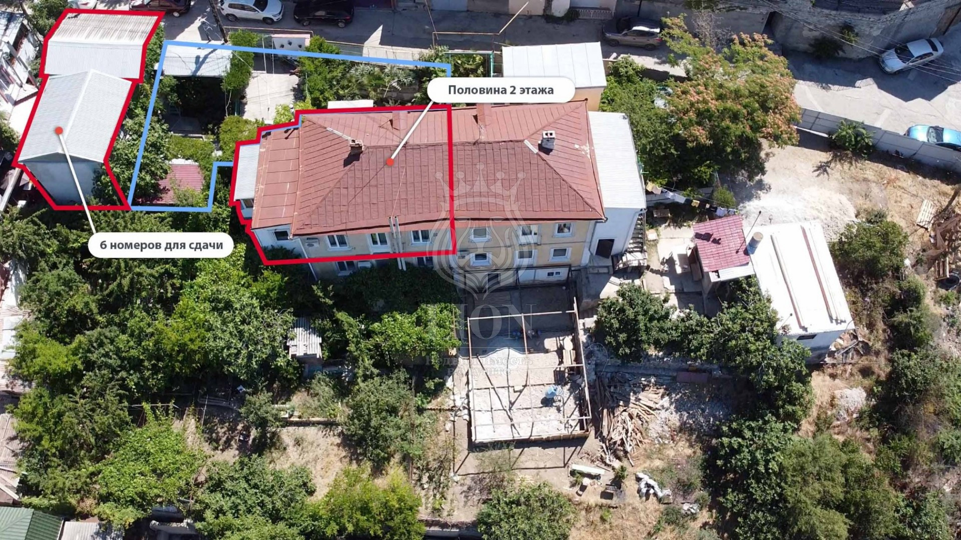 Второе помещение площадью 70 м2 используется в весенний/летний период для аренды жилья отдыхающим. Включает в себя: 7 комнат, летнюю кухню, беседку, 2 летних душа и 2 с/у.