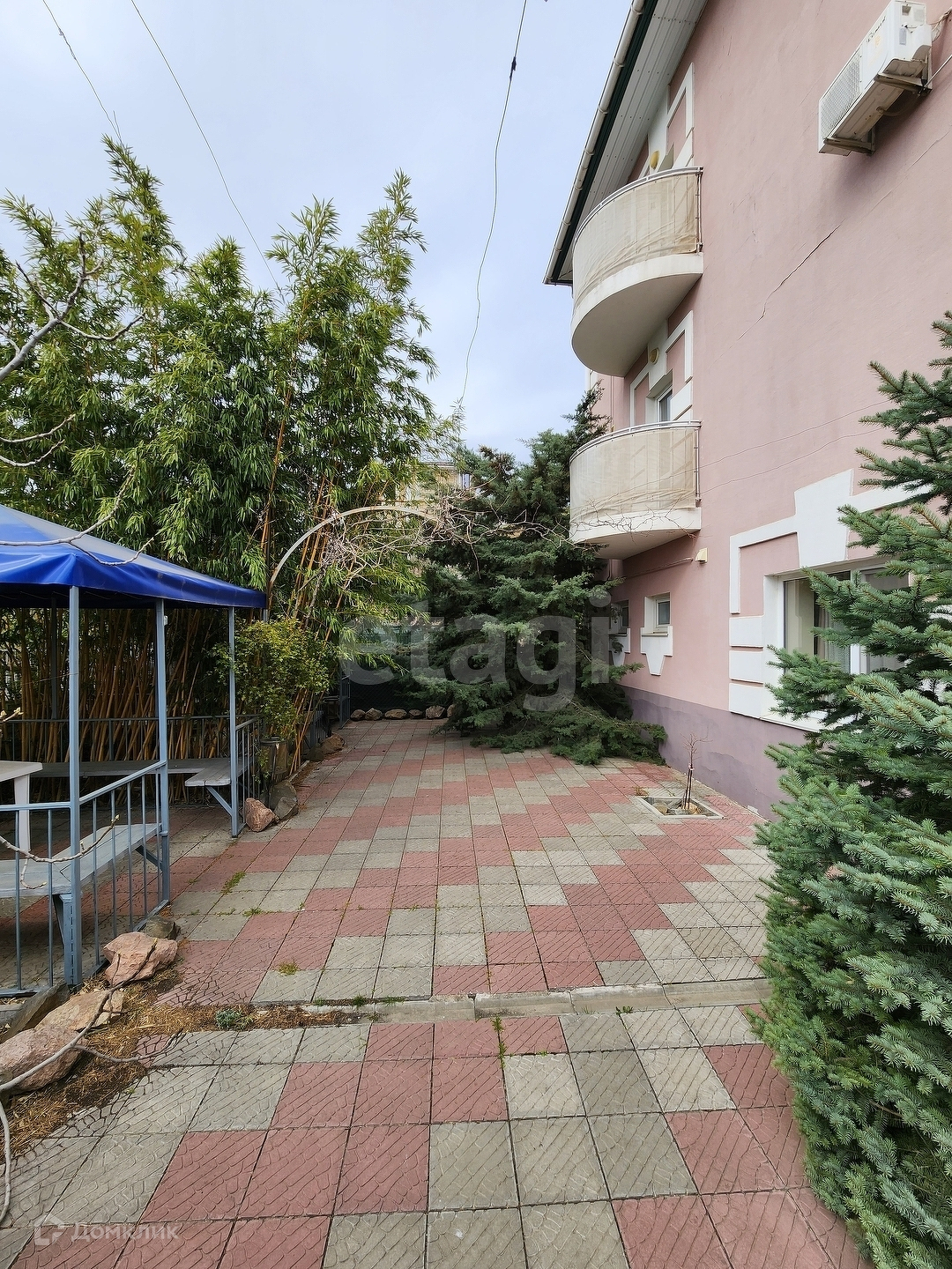 Продаётся гостевой дом, который является действующим бизнесом с круглогодичным доходом. Общая площадь составляет 300 квадратных метров. На участке площадью 6,7 соток расположен отдельно стоящий коттедж площадью 28 квадратных метров, четыре беседки, 11 номеров, из которых шесть однокомнатных номеров с санузлами, однокомнатная квартира с двумя лоджиями и двухкомнатная квартира с двумя лоджиями и коттедж с отдельной кухней. В каждой комнате установлено отопление теплыми водяными полами, также имеются подвал и подсобные помещения. Два въезда оснащены автоматическими воротами. Дом построен из камня и крымского ракушечника, стены имеют толщину метр и выполнены в соответствии с нормами сейсмостойкости и опорными стенками.