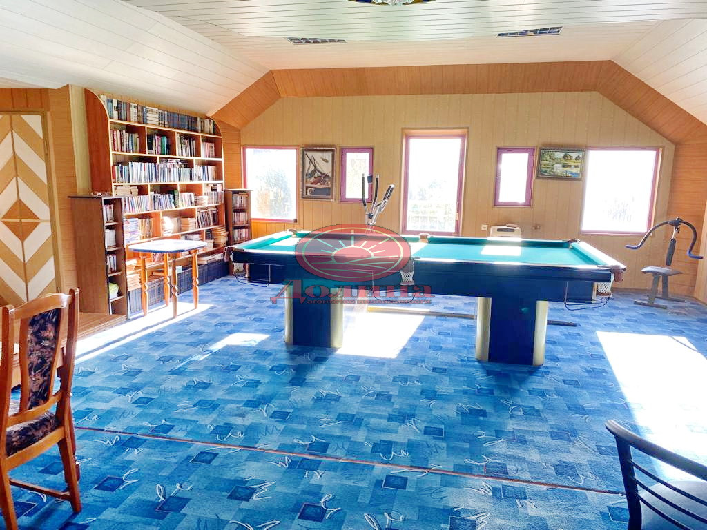 На втором этаже большая, просторная, светлая мансарда, где расположен бильярд, отличное место для спортзала и комната для гостей.