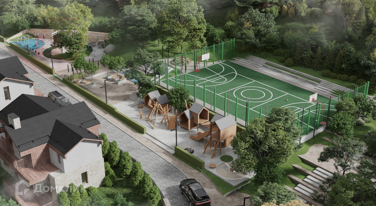 Поселок напоминает уютный швейцарский городок в Альпах: архитектурное решение в стиле «шале» продиктовано уникальным природным ландшафтом.