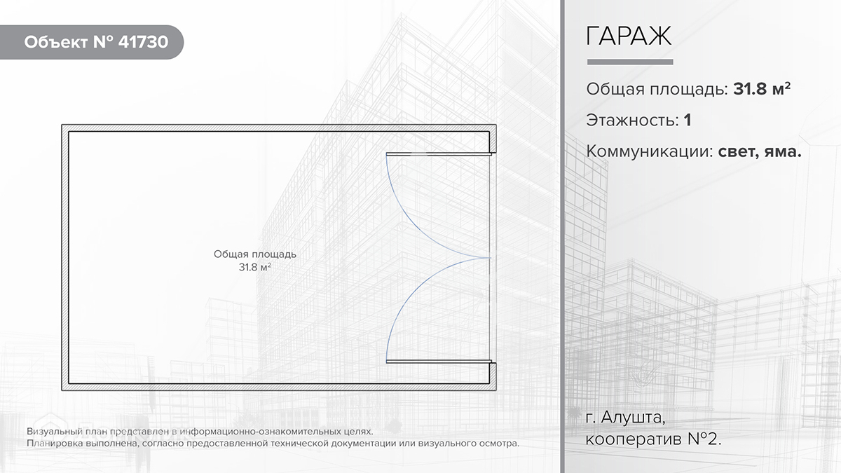 Общая площадь гаража – 31,8 м2.