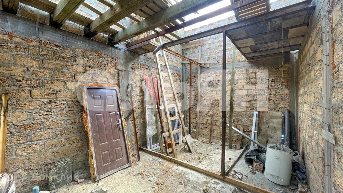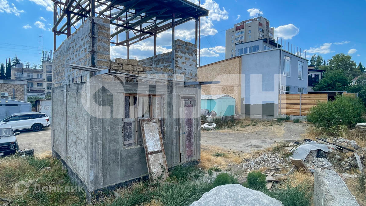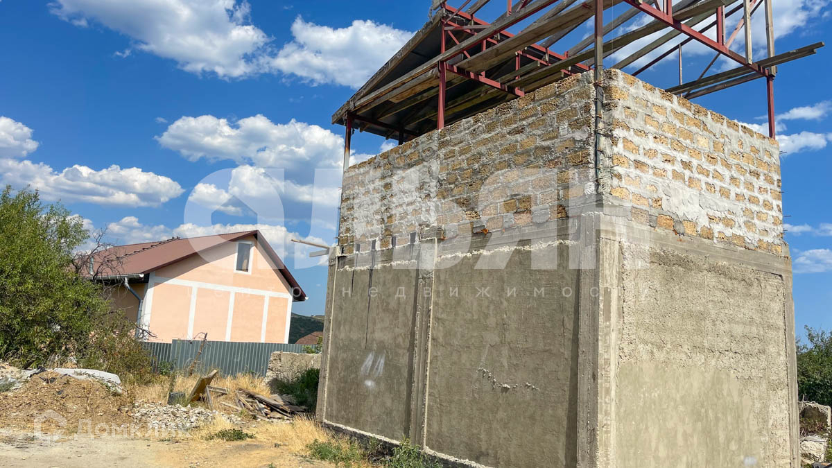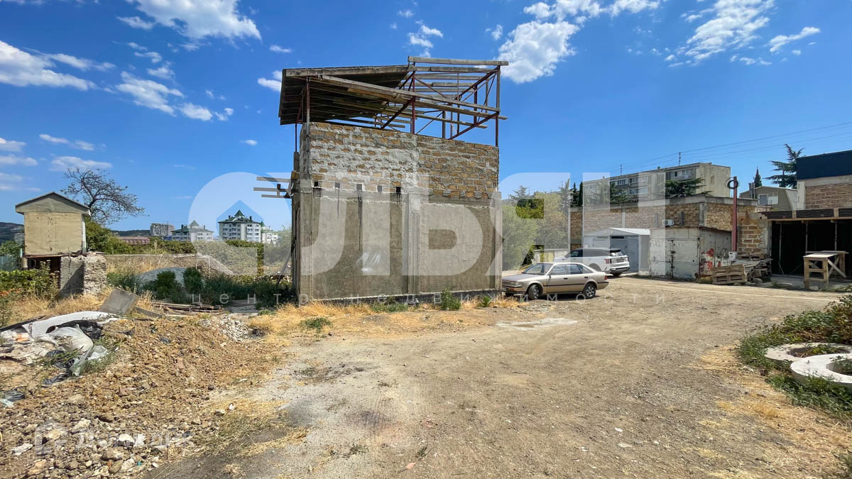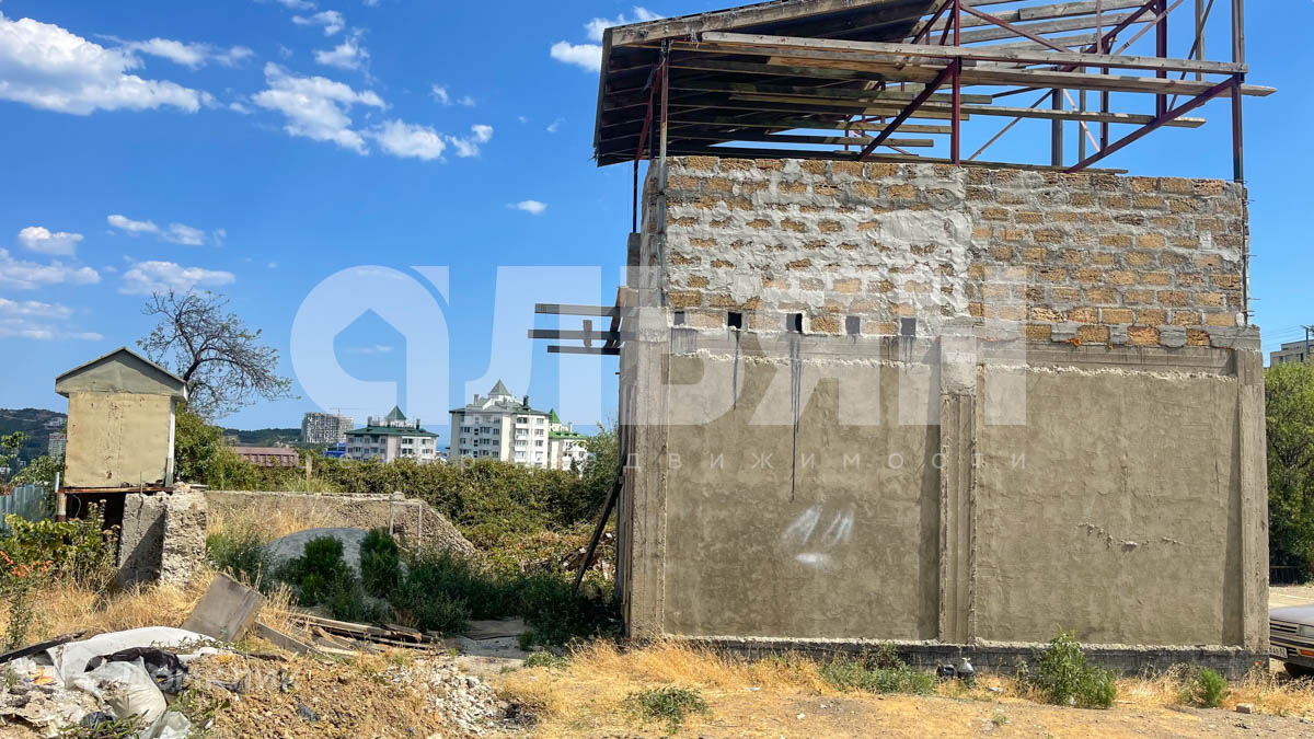 Земля в собственности. На участке залит фундамент, выгнаны стены два этажа, монолит каркас с заполнением ракушки, частично оштукатурен.