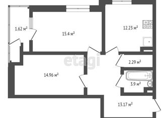 Двухкомнатная квартира на продажу, 51.8 м2, Симферопольская улица, 24