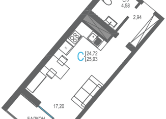 Продажа квартиры студии, 24.9 м2, улица 60 лет СССР, 18
