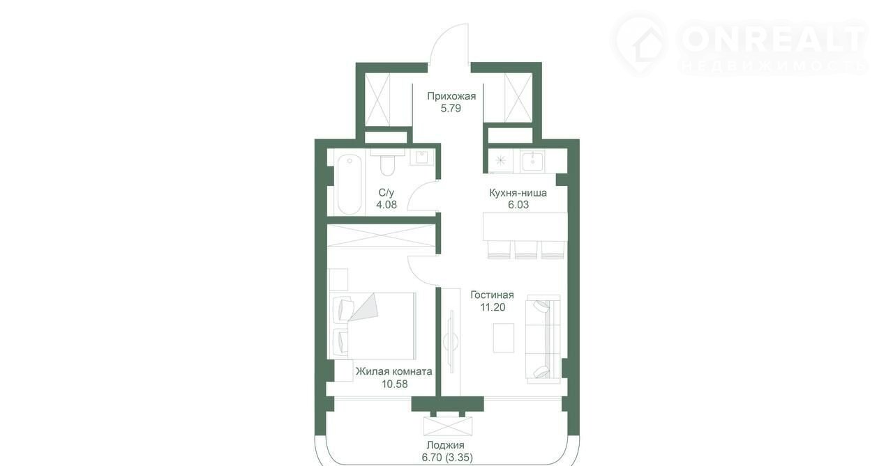 Балкон, лоджия 1 лоджия