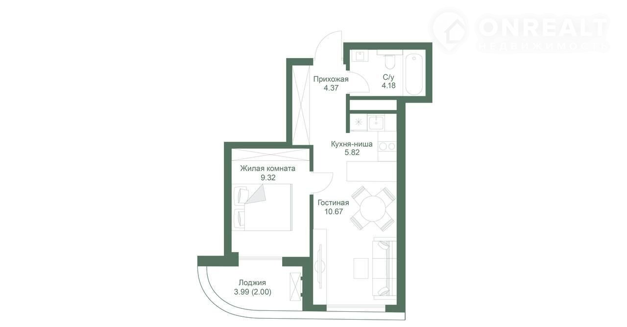 Балкон, лоджия 1 лоджия