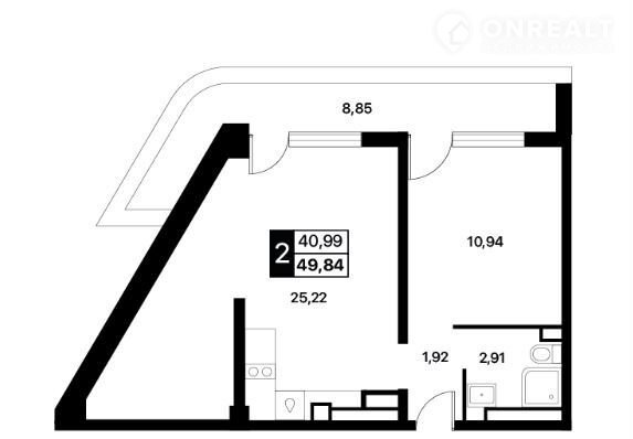 Общая площадь 49.8 м2