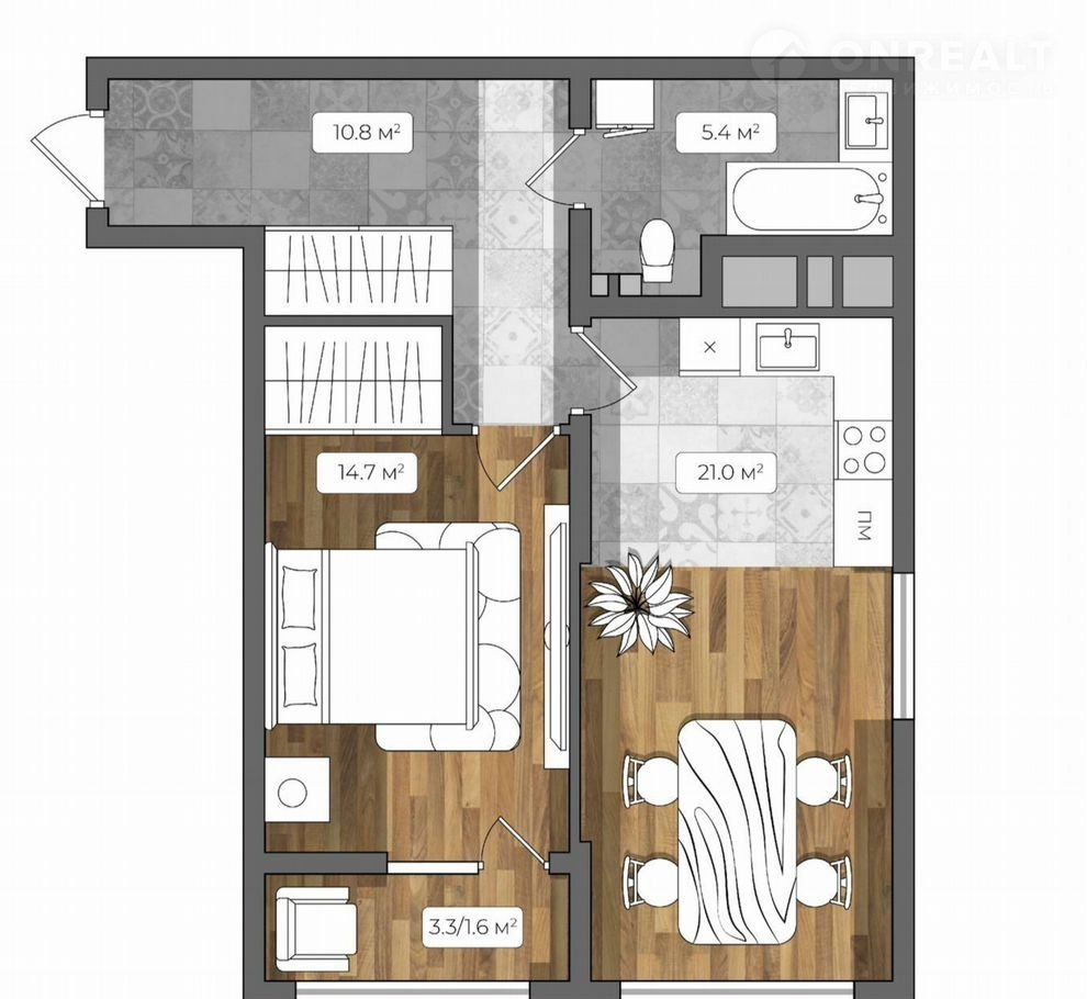 Общая площадь 54 м2