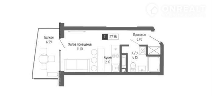 Общая площадь 27.4 м2