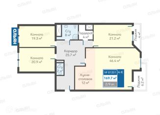 Общая площадь: 169.7 м2