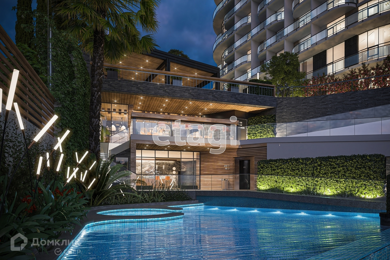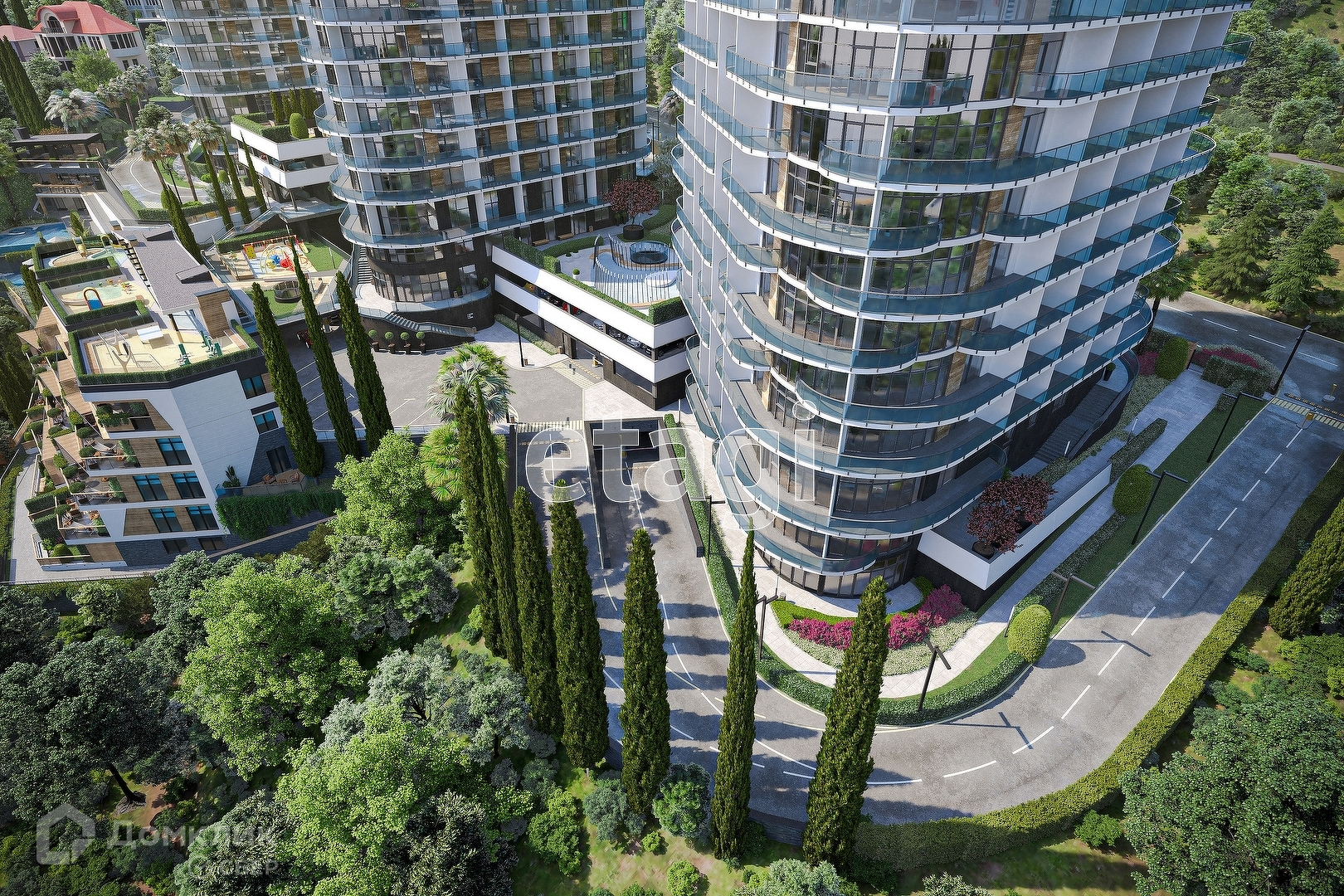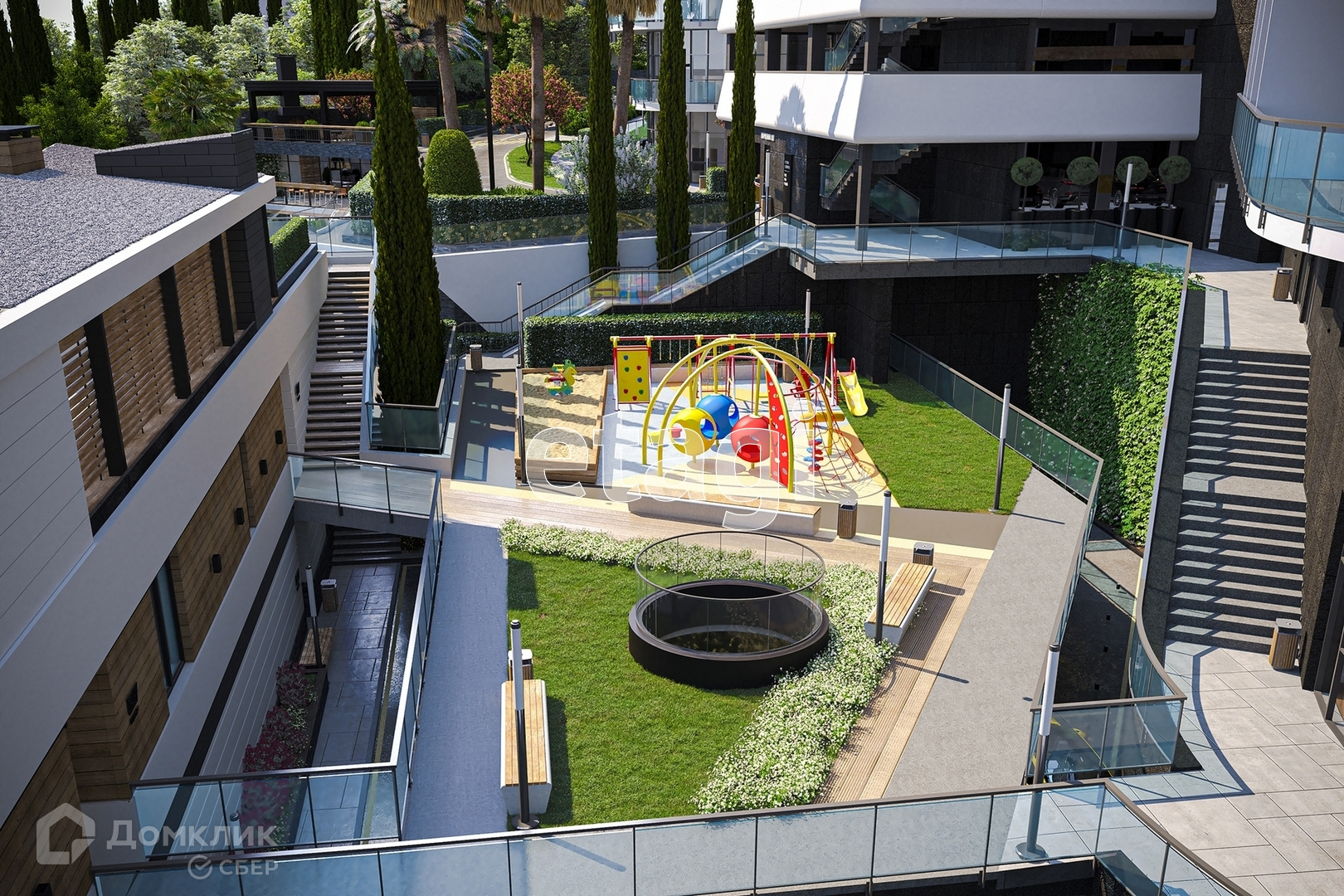 В Апарт-комплексе создается собственная экосистема с бассейнами, паркингами, зонами отдыха, спортивными и детскими площадками, рестораном, фитнесом и SPA, ТРЦ, коммерческими помещениями на первых этажах.