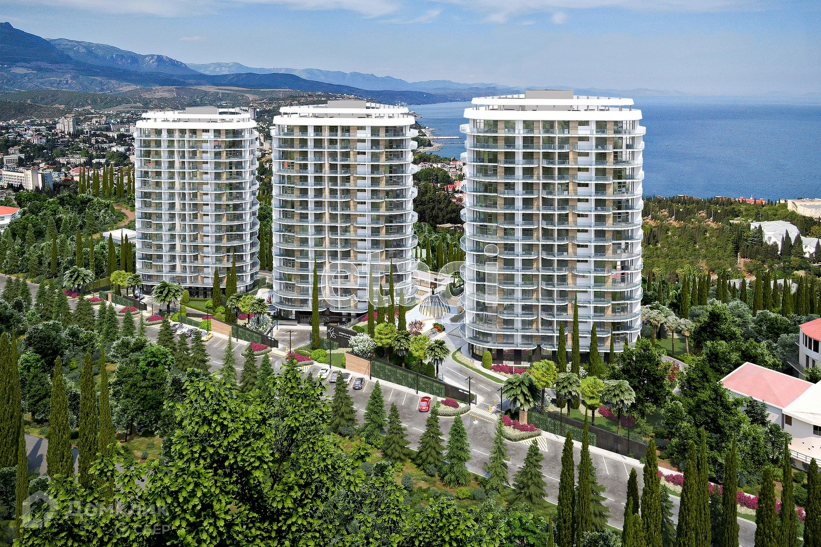 Комплекс бизнес-класса расположен в сердце Южного берега Крыма. Вид на горы Демерджи, Чатыр-Даг и Кастель. Здания оригинальной треугольной формы обеспечивают равномерное наполнение каждых апартаментов солнечным светом.