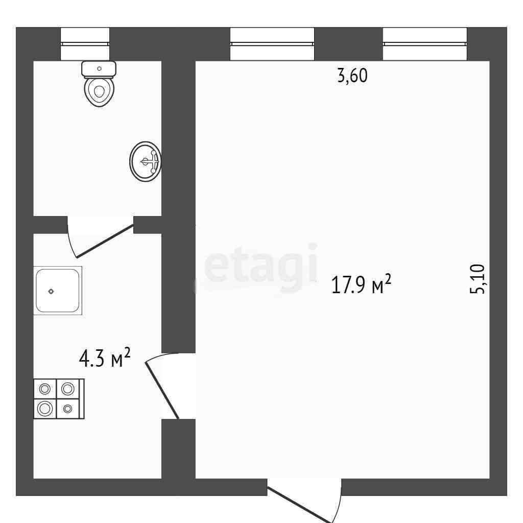 Общая площадь 21 м2