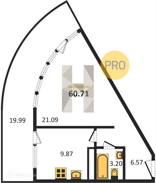 Общая площадь 60.71 м2