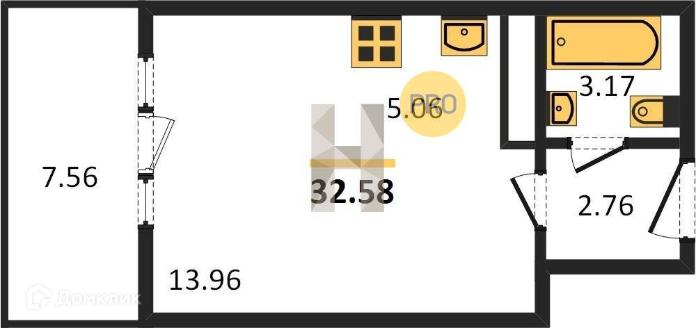 Общая площадь 32.58 м2