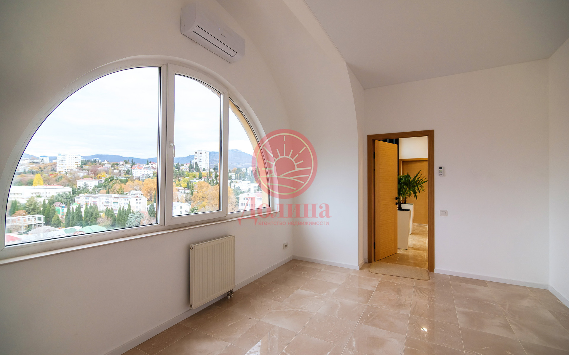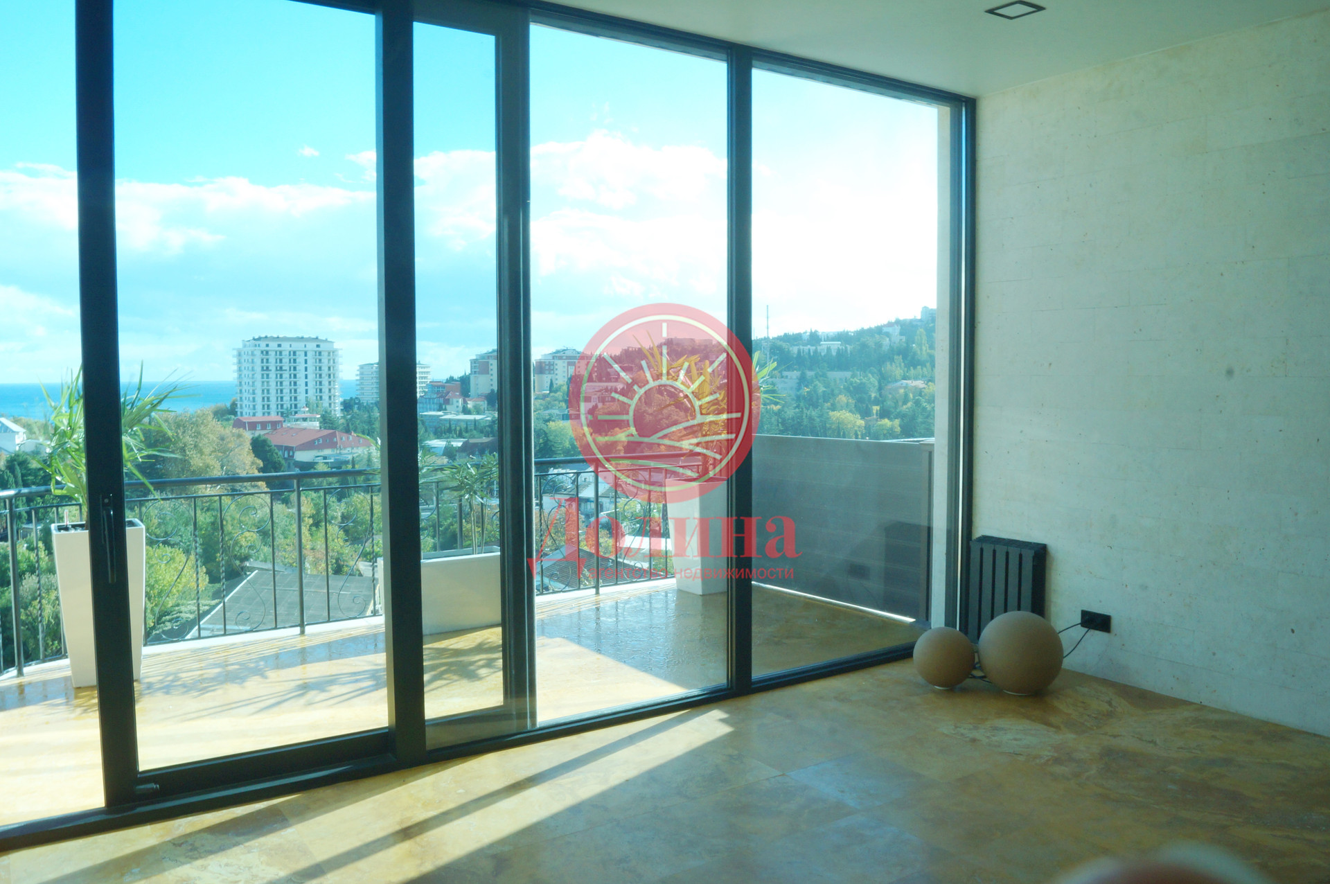 В продаже апартамент с шикарными видовыми характеристиками, общей площадью – 119 м2, в самом центре г. Алушта по ул. Багликова, 21. Расположен на девятом этаже девятиэтажного монолитного здания 2012 года.