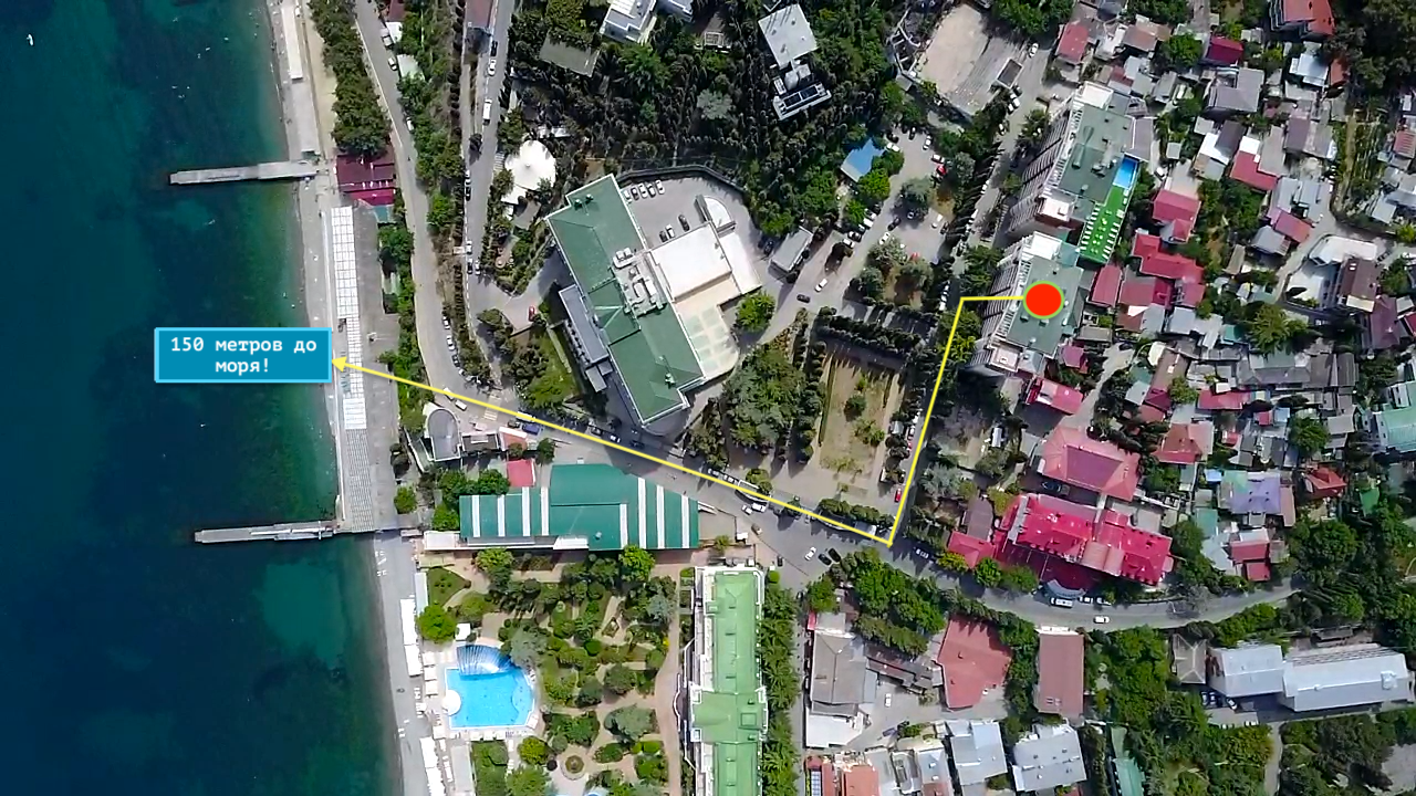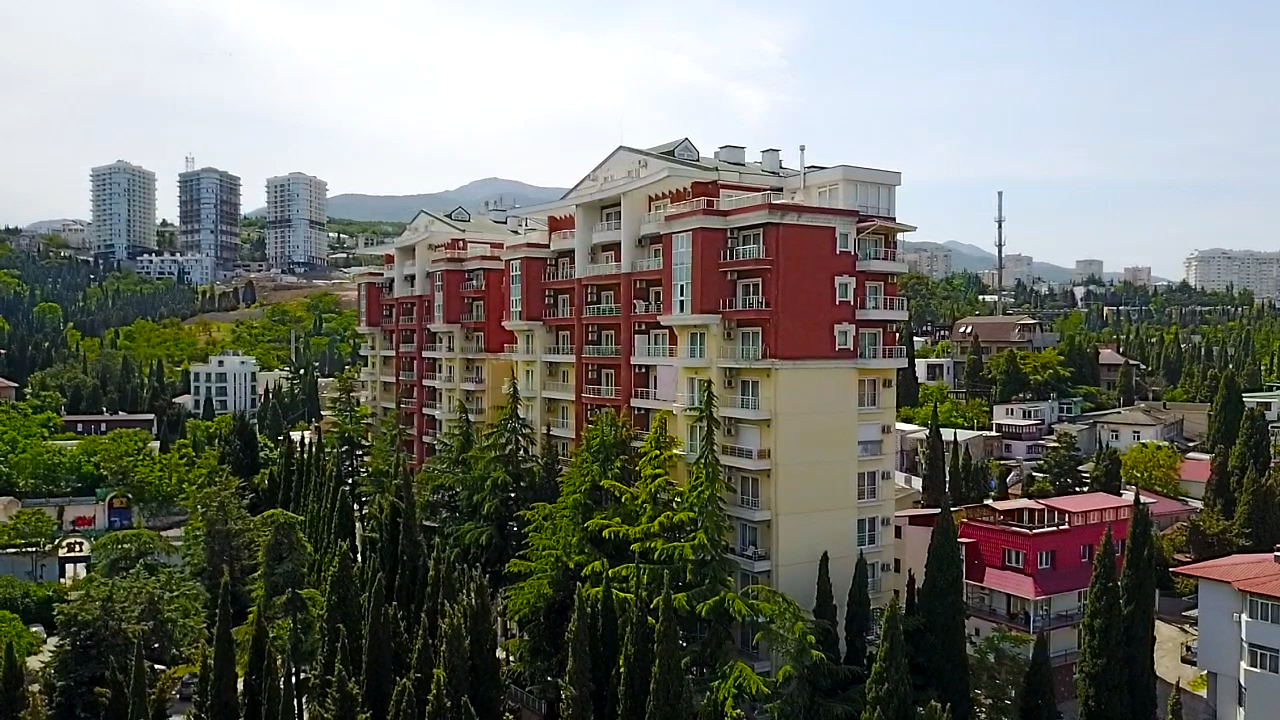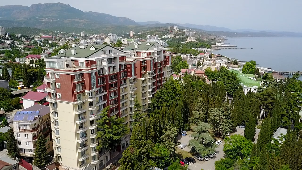 Апартаменты расположены в комплексе «Royal» по адресу: г. Алушта, ул. Краснофлотская, 1.