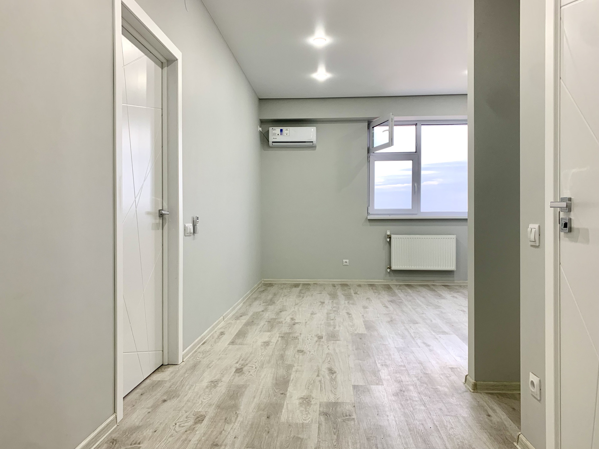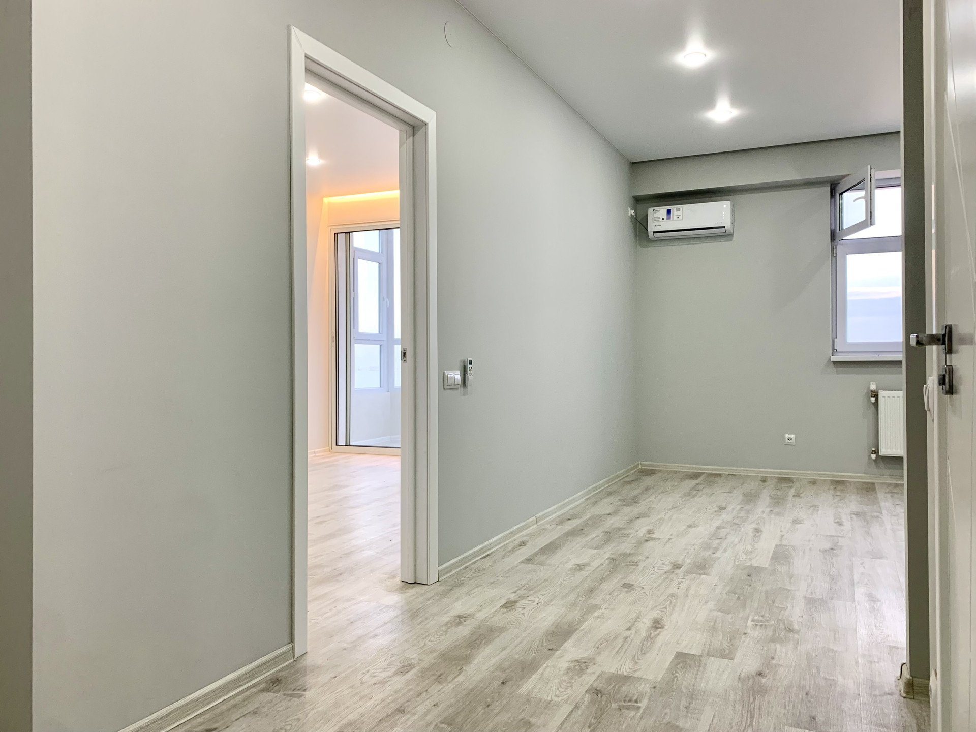 В квартире полностью выполнен ремонт, новому собственнику остаётся только лишь её меблировать и оснастить необходимой техникой. Установлены: 2 кондиционера, панорамное раздвижное остекление между спальней и балконом; выполнена шумоизоляция в помещении спальни от смежной соседской квартиры, полы - кварц-виниловое покрытие.