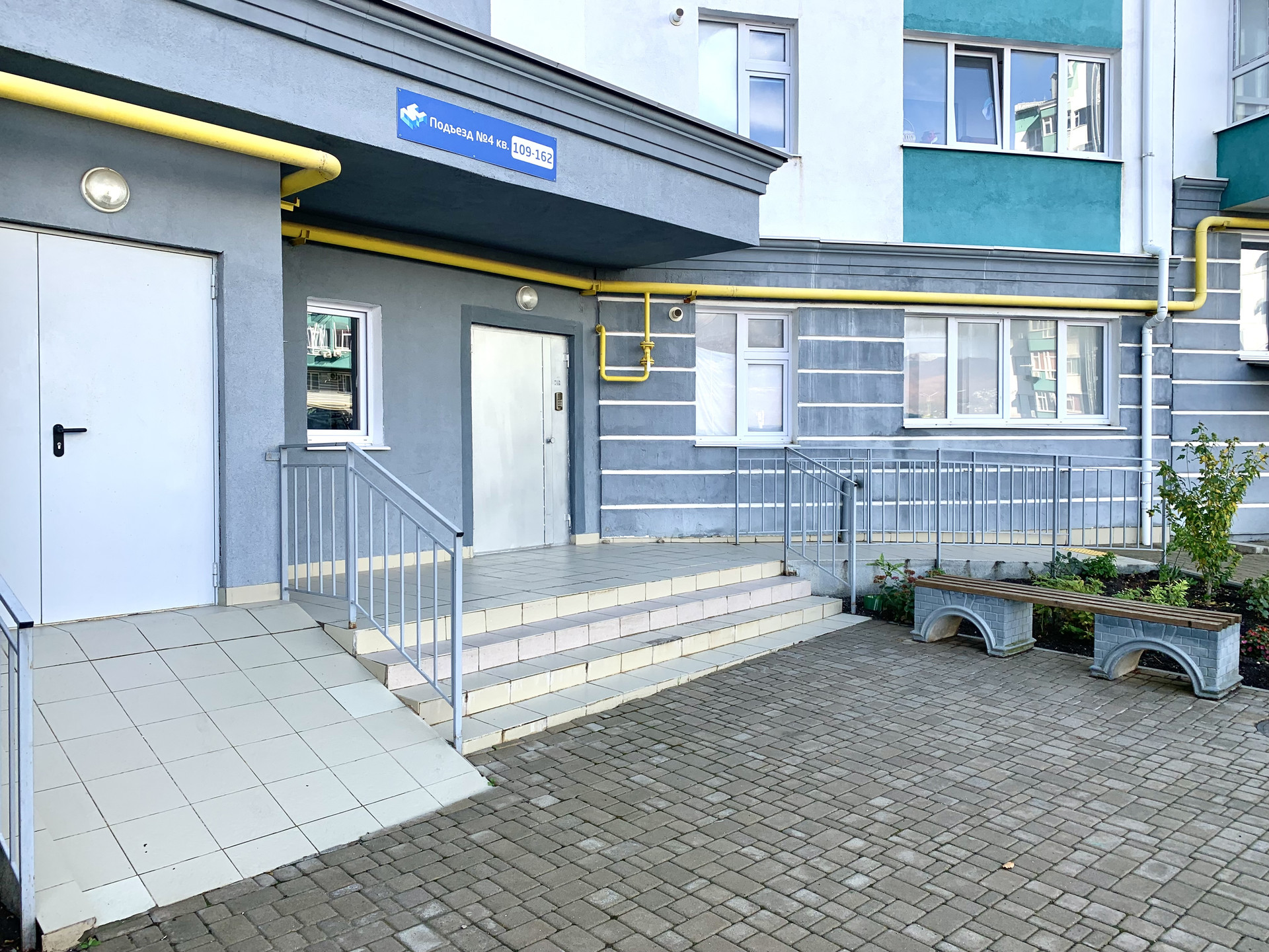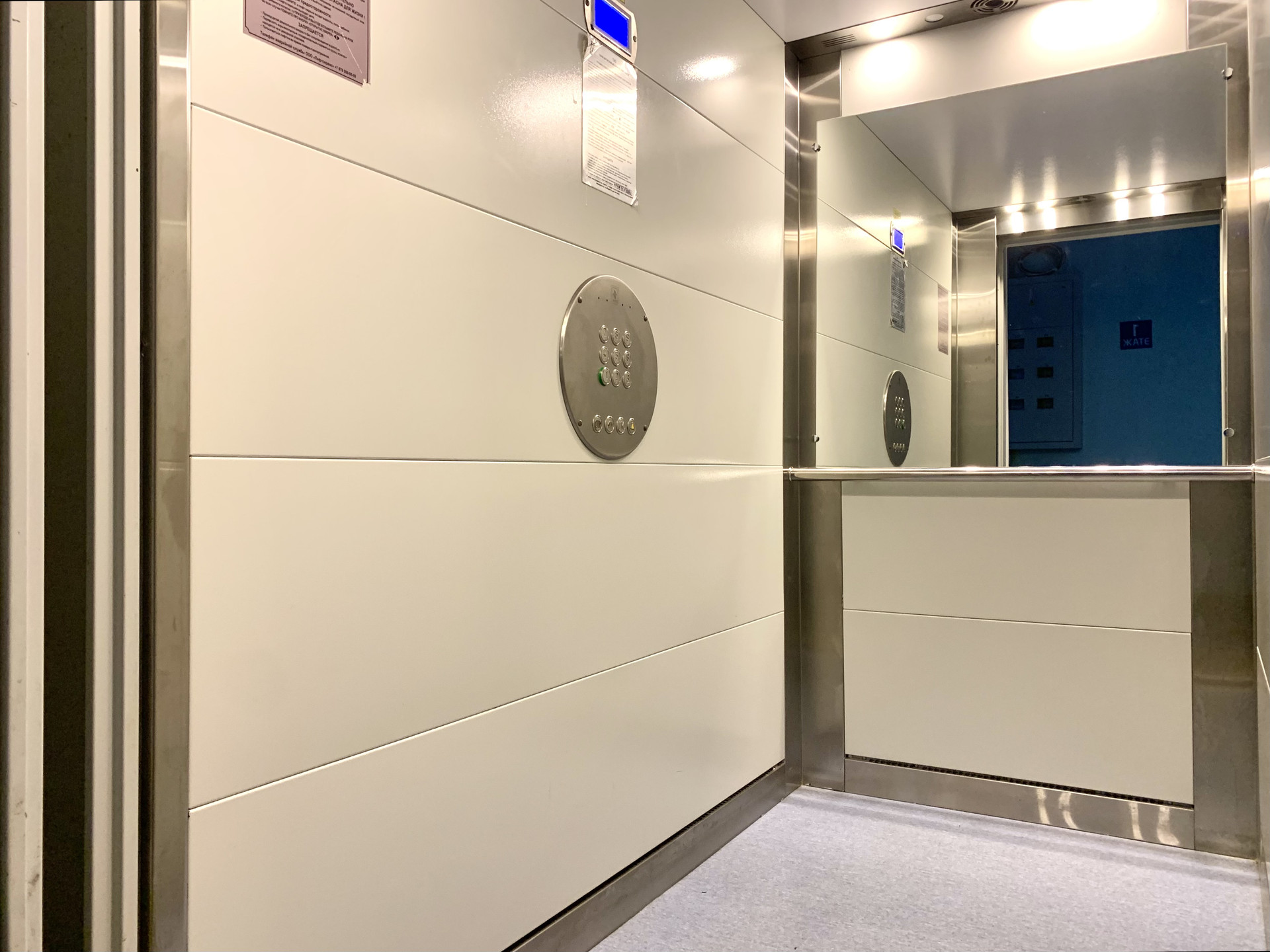 Подъезд дома с домофоном, установлен грузопассажирский лифт.