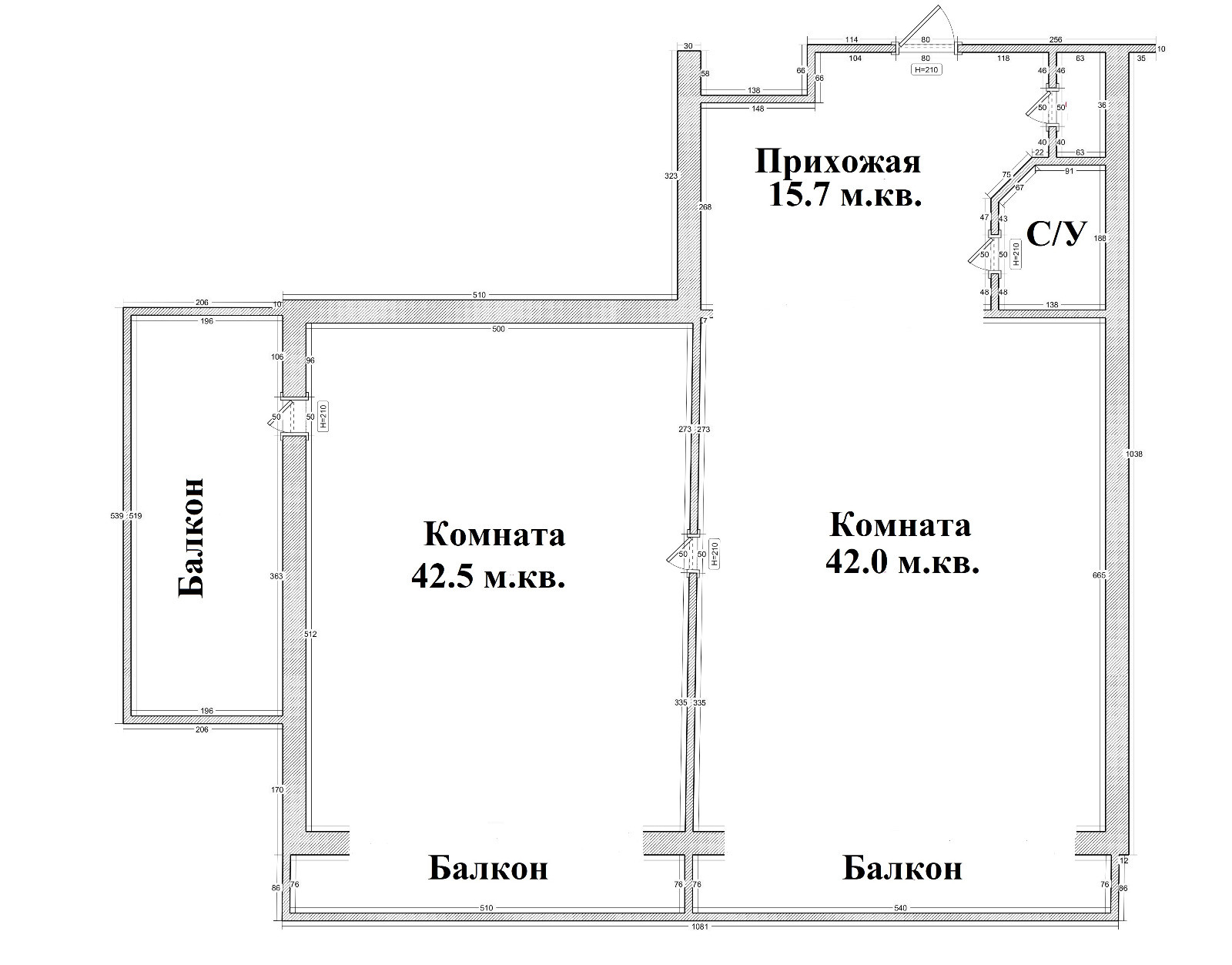 Высота потолков 2.7 м