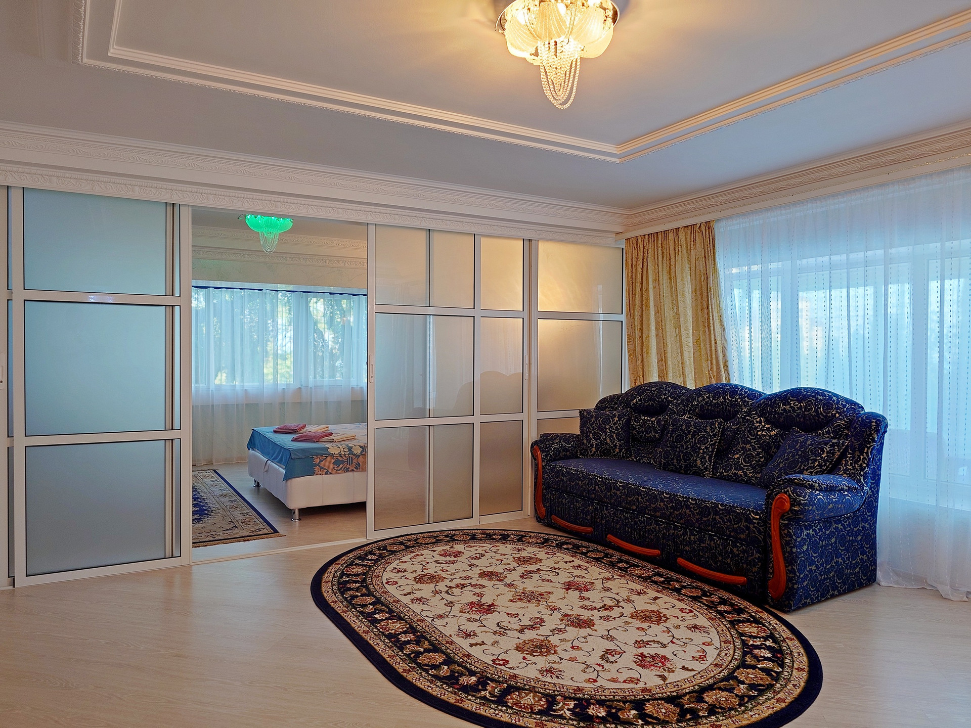 Общая площадь апартамента составляет 133 кв.м с учетом балконов.