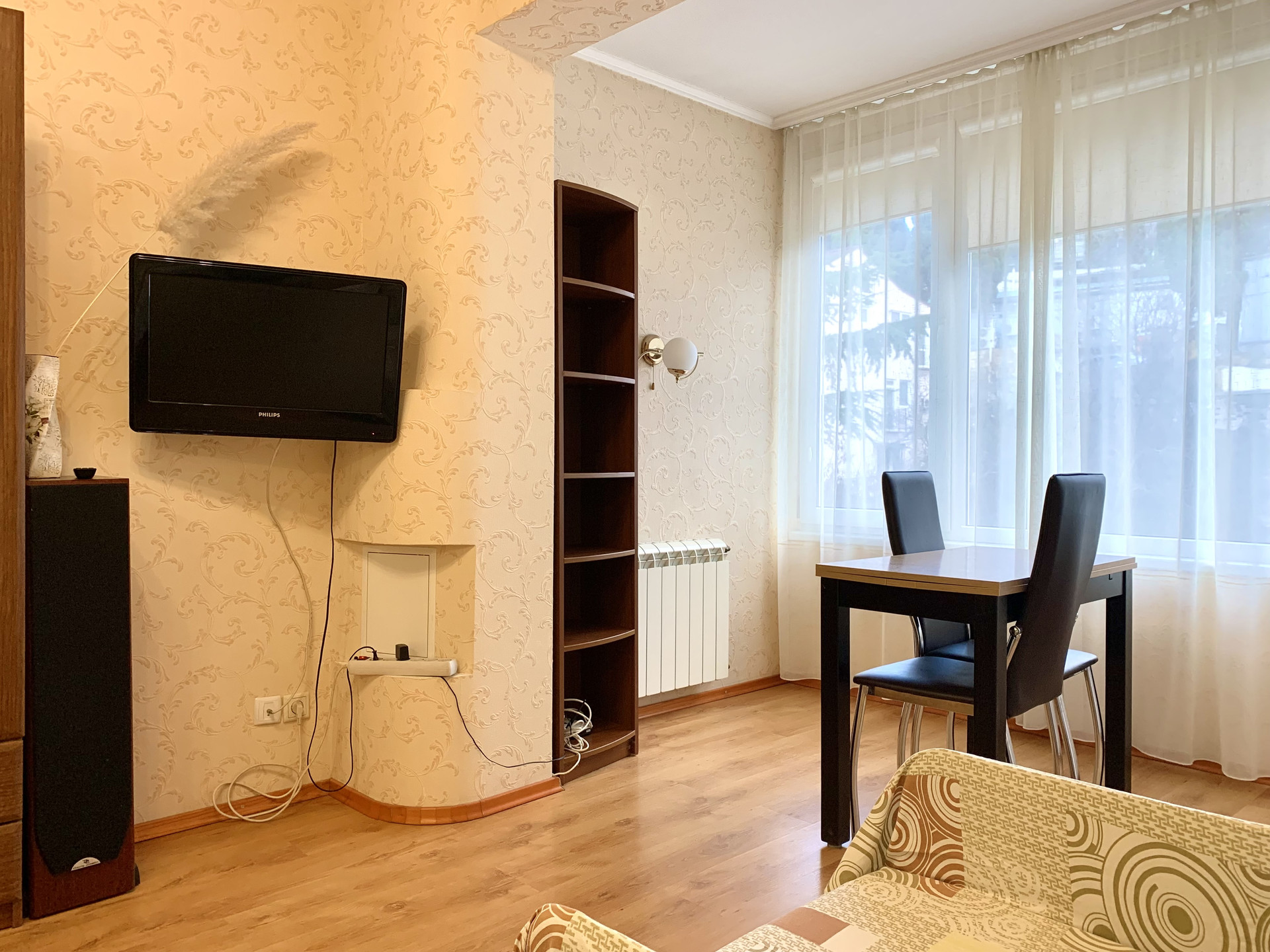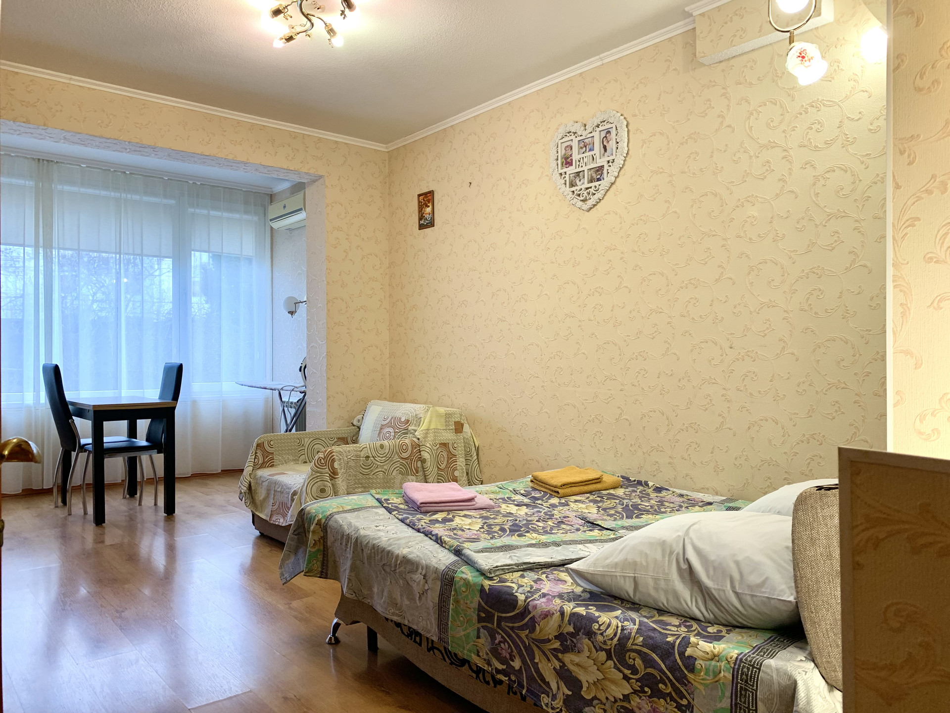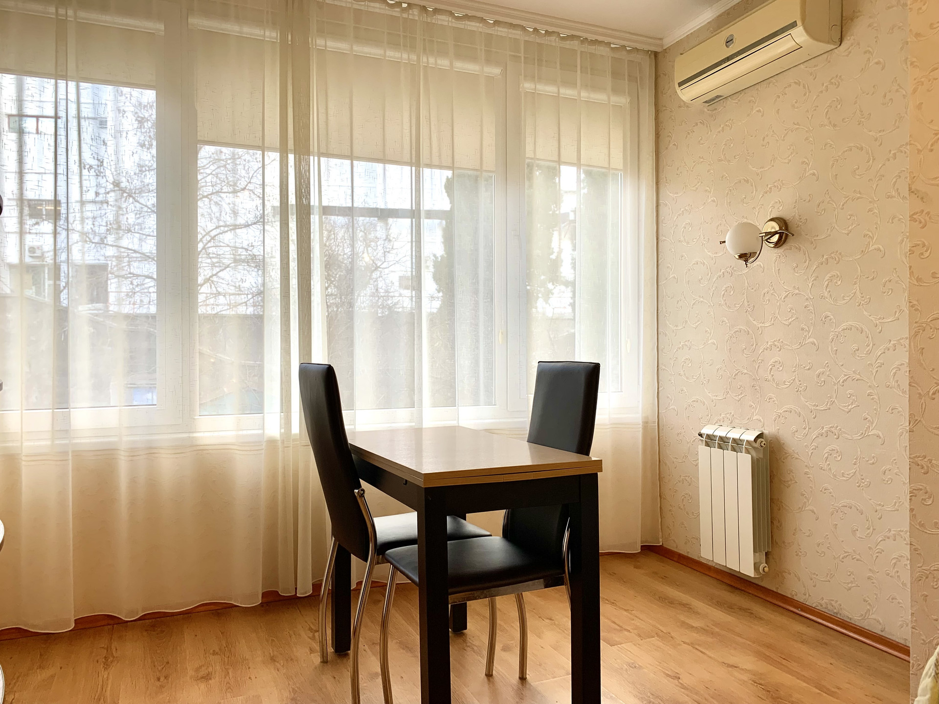 В квартире полностью выполнен ремонт, в наличии вся необходимая мебель и техника. Установлены: 2 кондиционера, газовая колонка. Дополнительно выполнено утепление квартиры по наружным стенам дома.