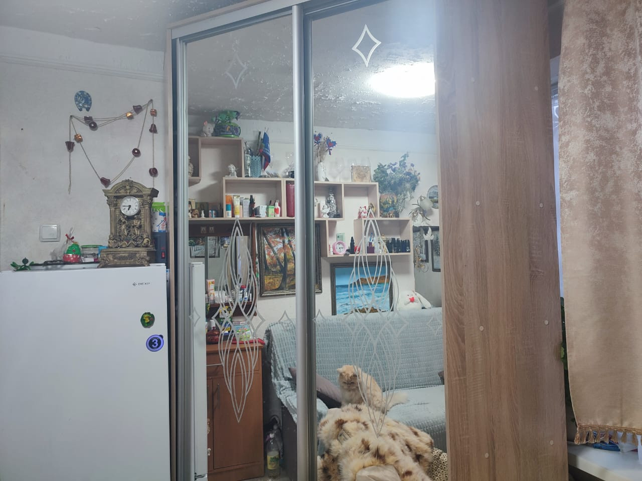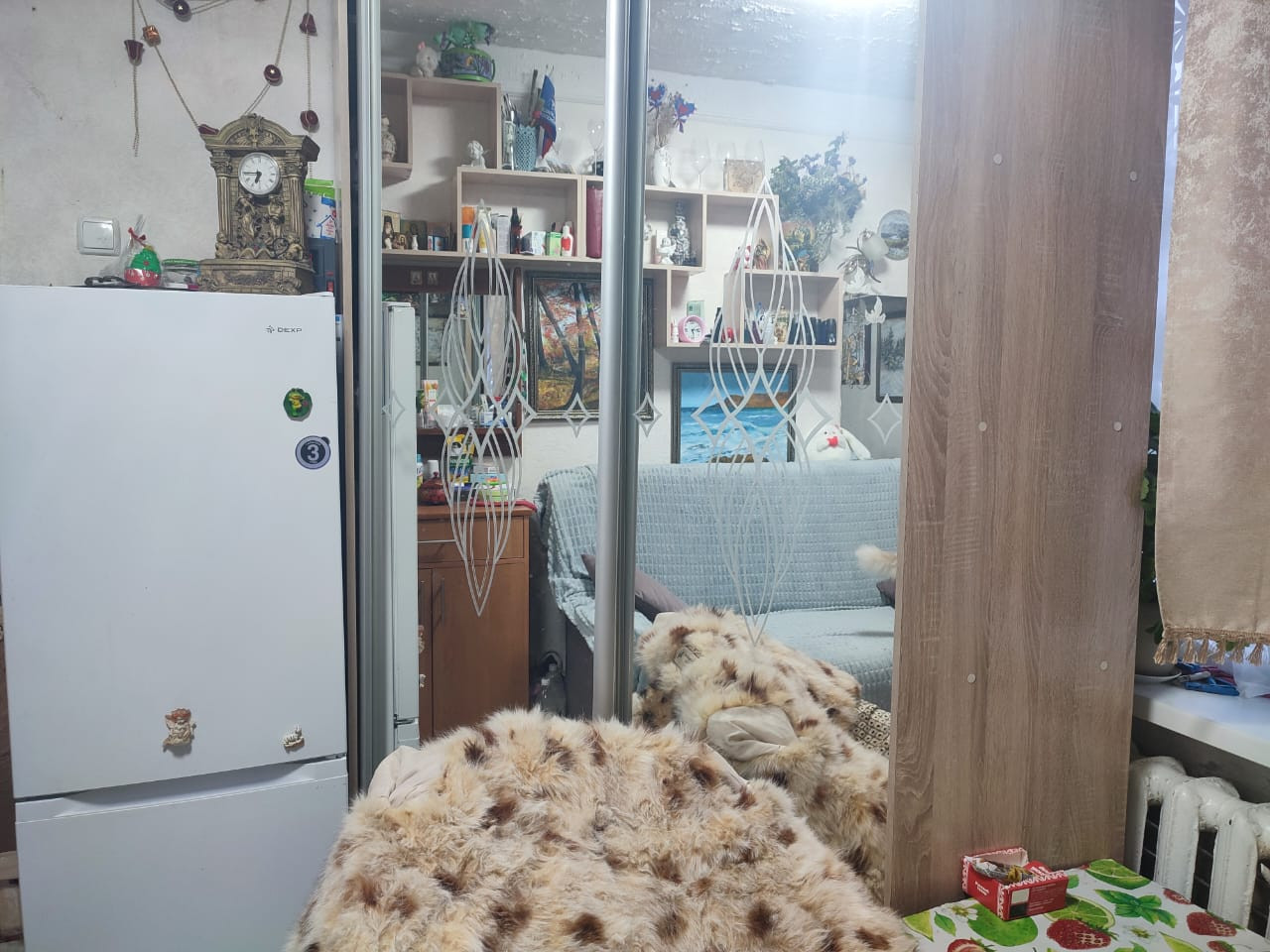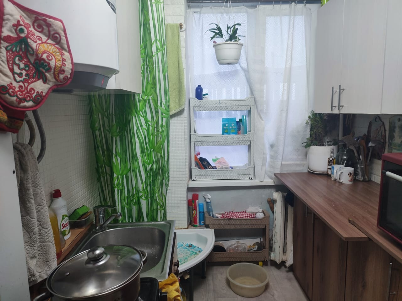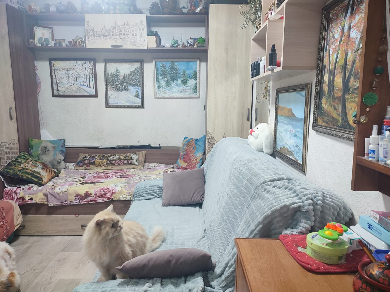 квартира в хорошем состоянии. Есть кухня и душ, с/у на 2 квартиры. чистый ухоженный подъезд, хорошие соседи. дом расположен удачно ,рядом магазины, детская площадка, остановка автобуса.