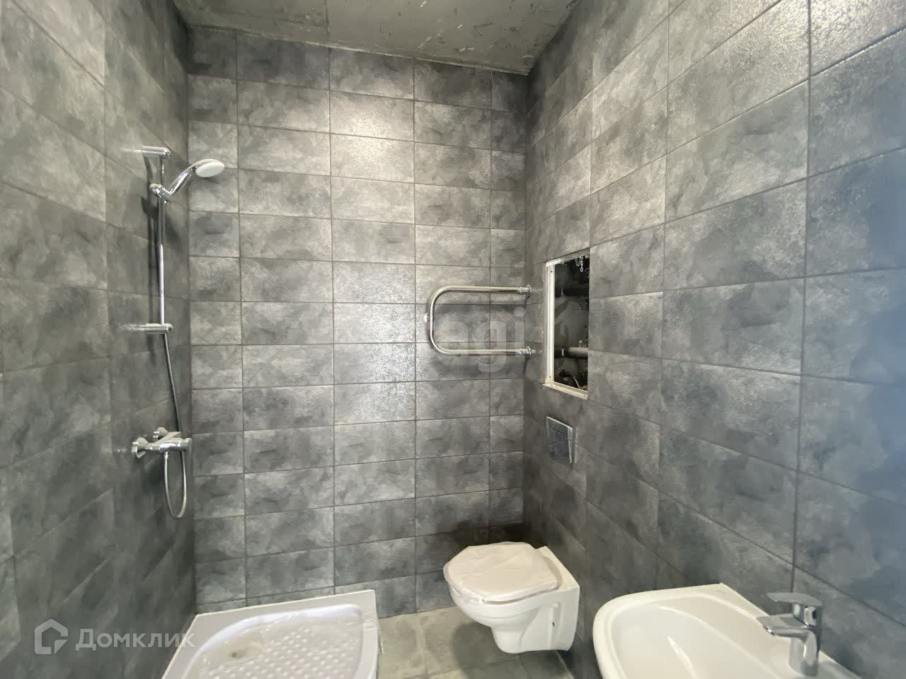 Апартаменты продаются в пред чистовой отделке. Веерная планировка , Два открытых балкона. В апартаментах панорамные окна. Санузел в кафеле стильного серого цвета, установлены раковина, унитаз и душевой поддон.
