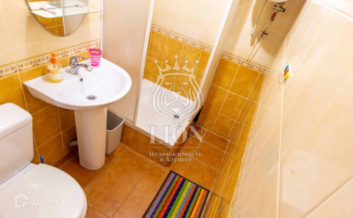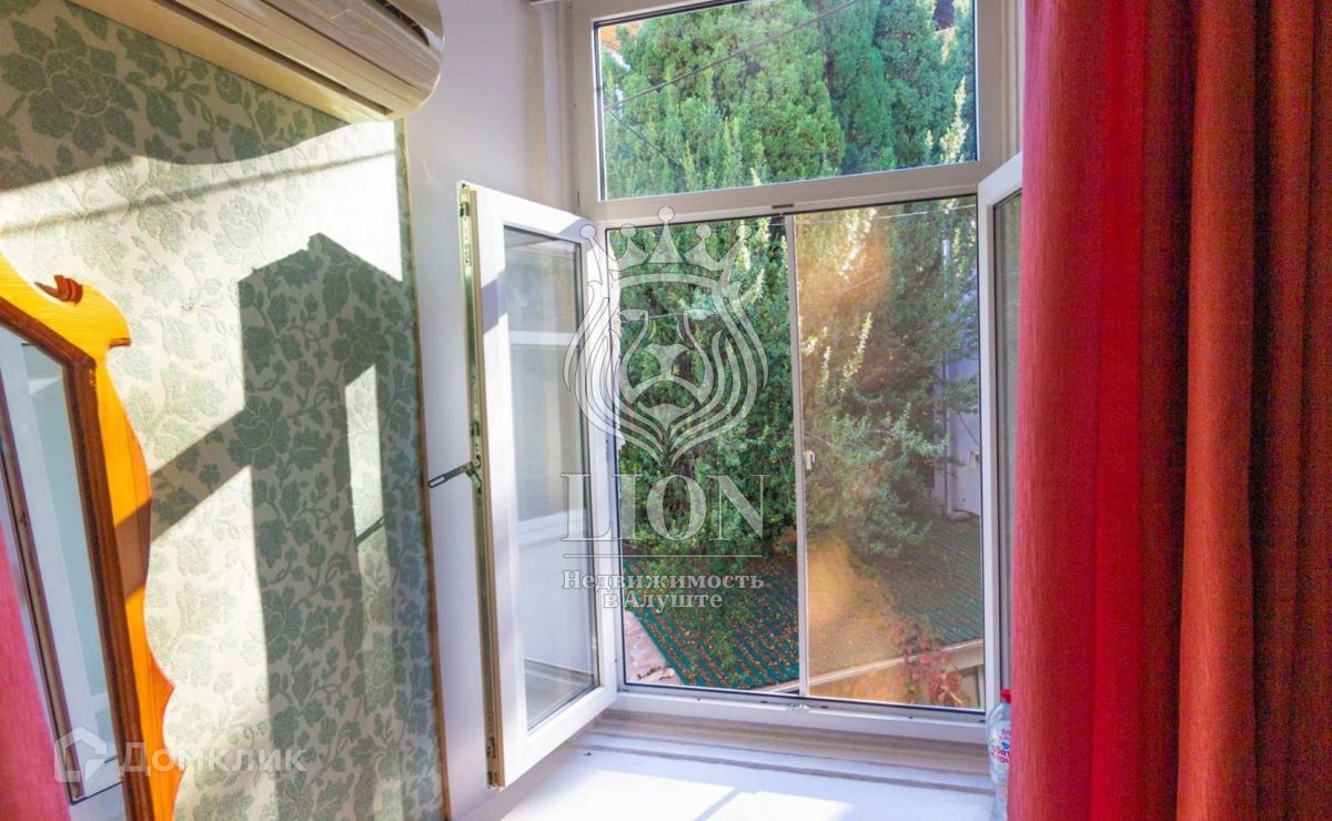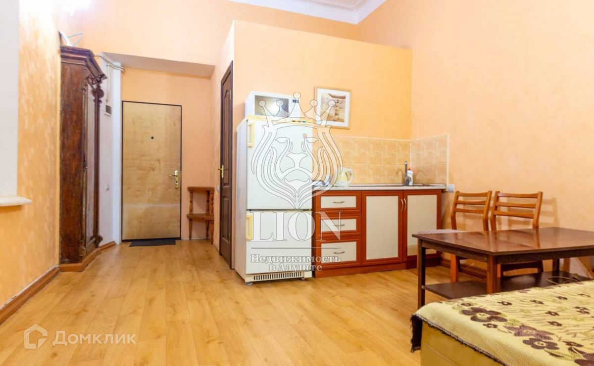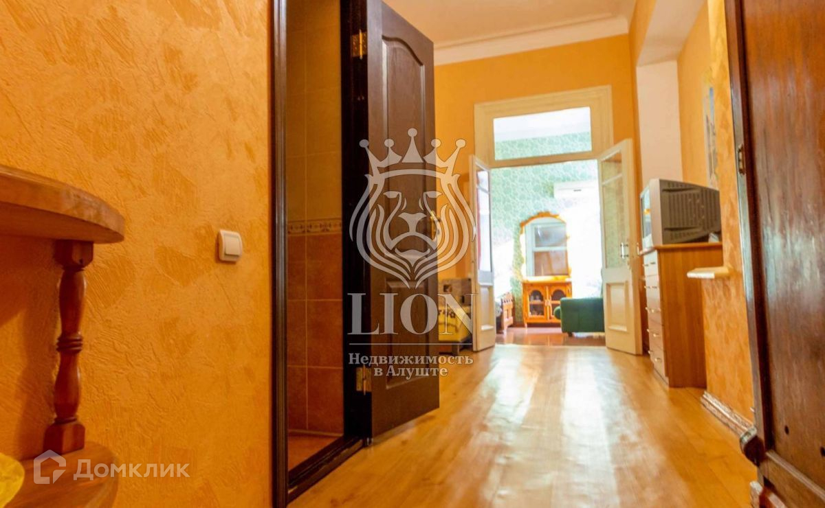Однокомнатная квартира площадью 32 квадратных метров с высотой потолков 4,5 метра и метровыми, каменными стенами. Квартира хорошо сдаваема в аренду в курортный сезон, так как расположена в 150 метрах от пляжей Алушты. Рентабельность квартире прибавляет очень низкие коммунальные платежи (расходы только по счётчикам, ЖЭКа нет, оплата в ТСЖ –5000 рублей в год, за городское отопление платить не нужно). Квартира в состоянии небольшого косметического ремонта: на полу линолеум, стены оклеены обоями, потолок прошпатлеван и покрашен, окна заменены на стеклопакеты, входная дверь металлическая (есть маленькая прихожая-тамбур), горячую воду обеспечивает электрический бойлер, имеется 1 кондиционер, сантехнику регулярно меняли по мере необходимости, электрическая проводка была полностью заменена на медную в 2006 году.