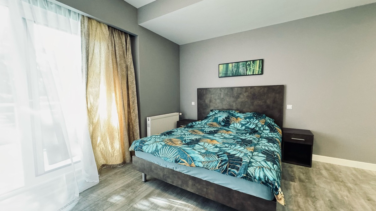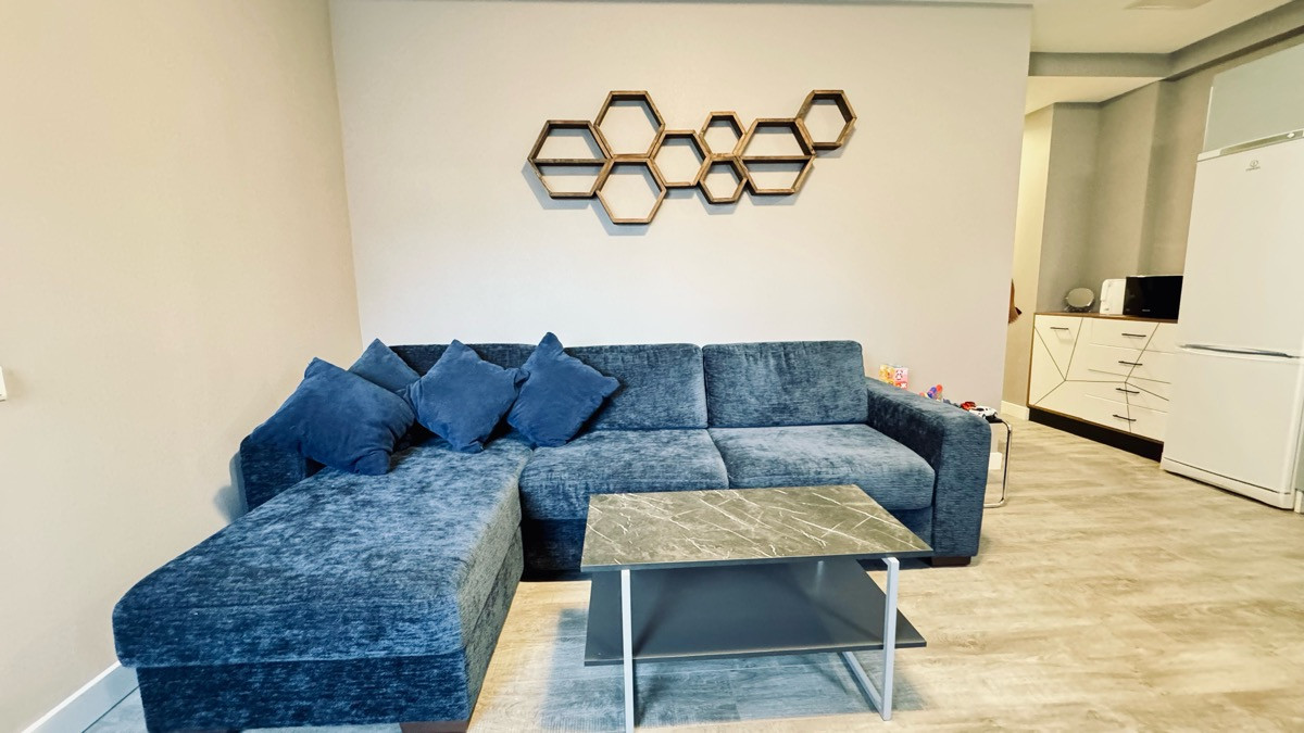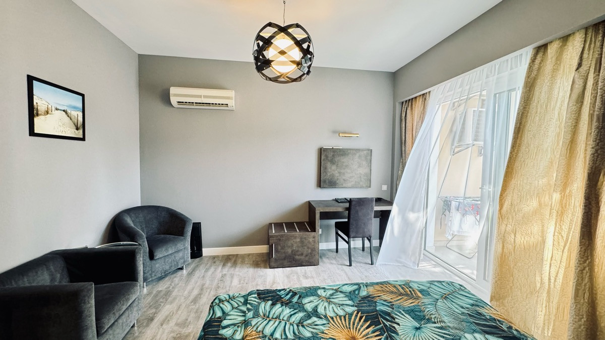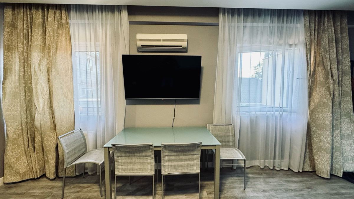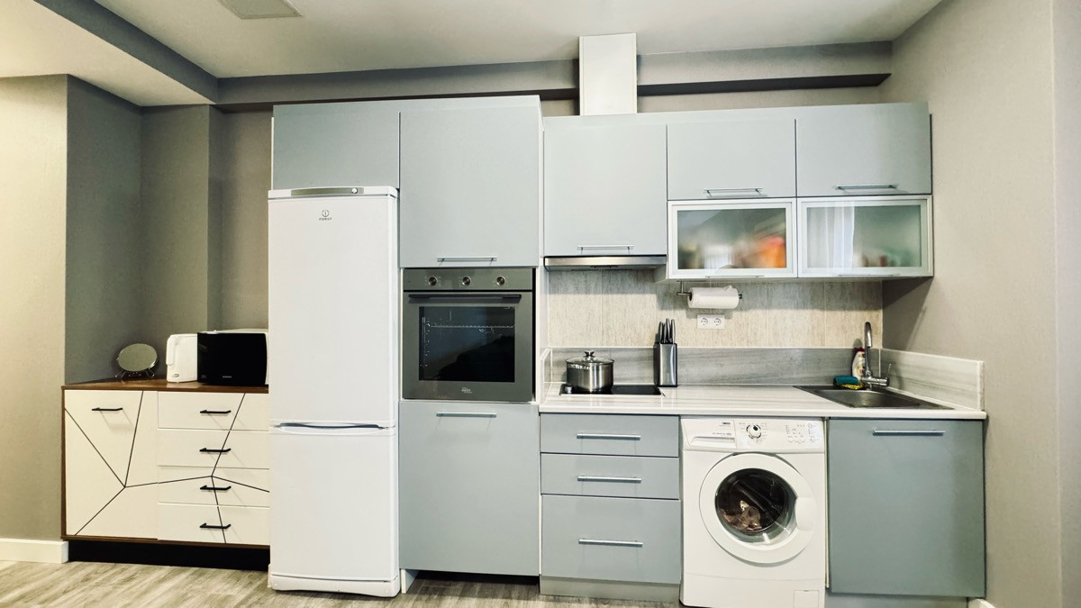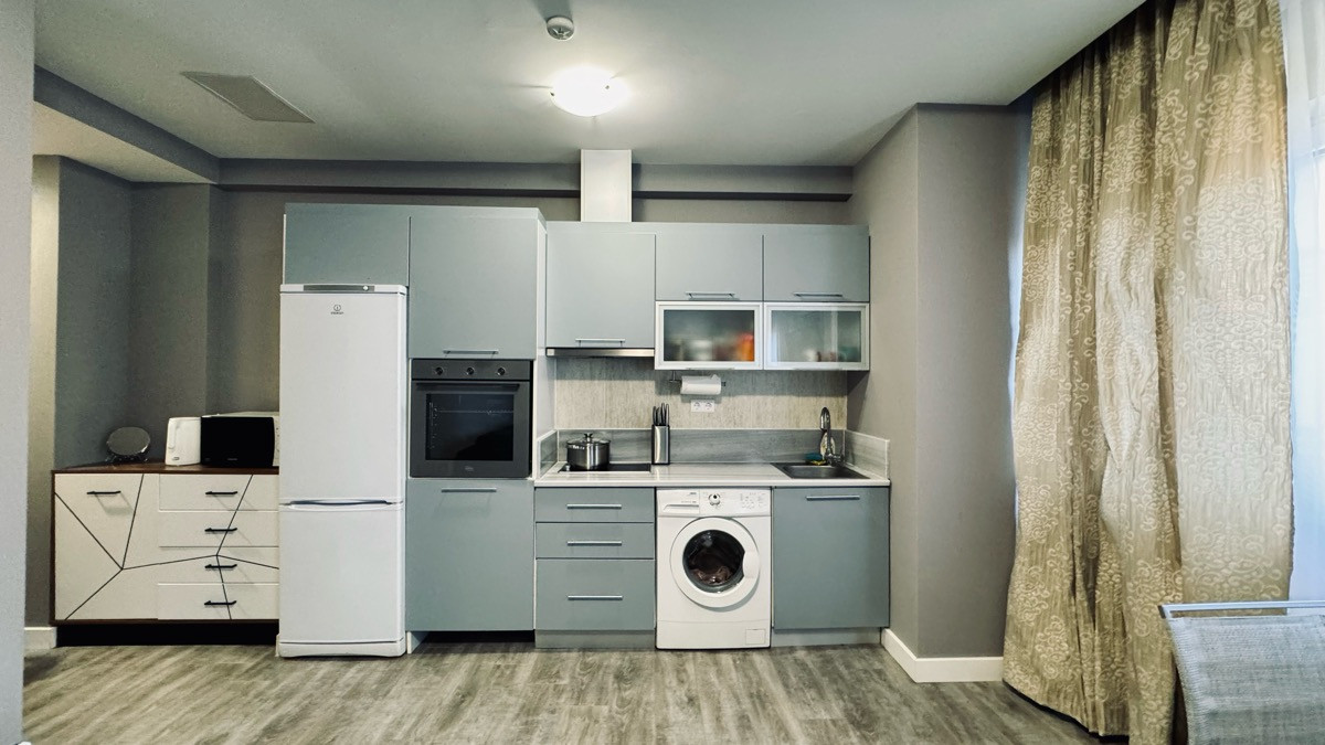 Апартамент укомплектован мебелью и техникой.