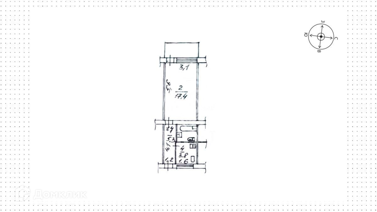 Жилая площадь 17.4 м2