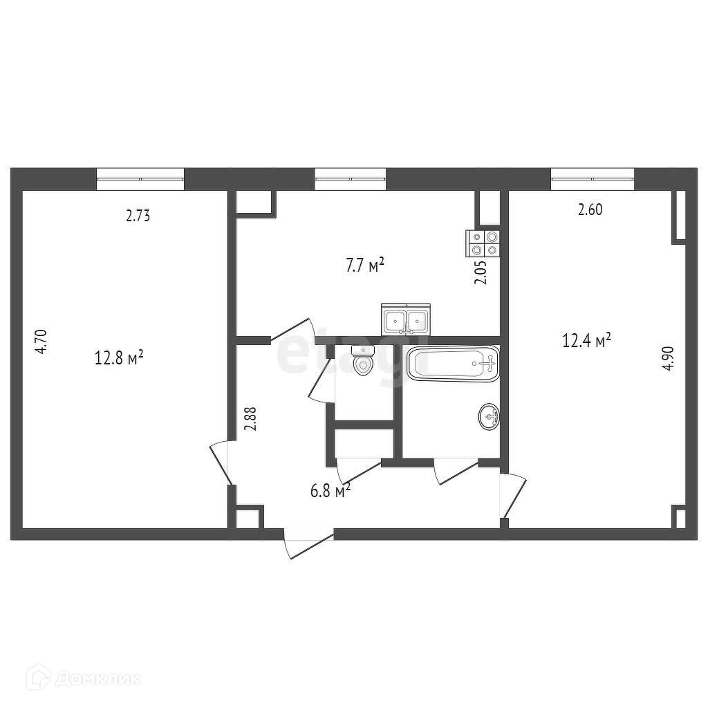 Общая площадь 42.4 м2