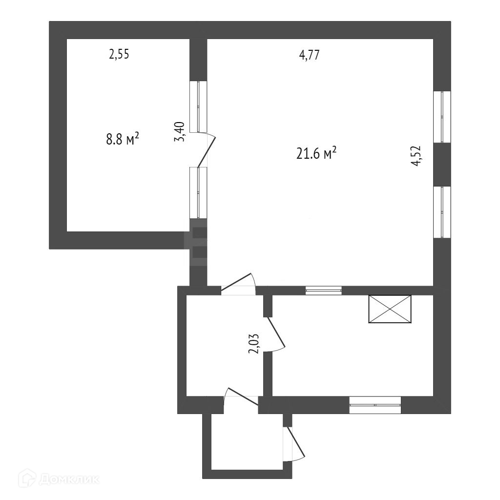 Жилая площадь 30.4 м2