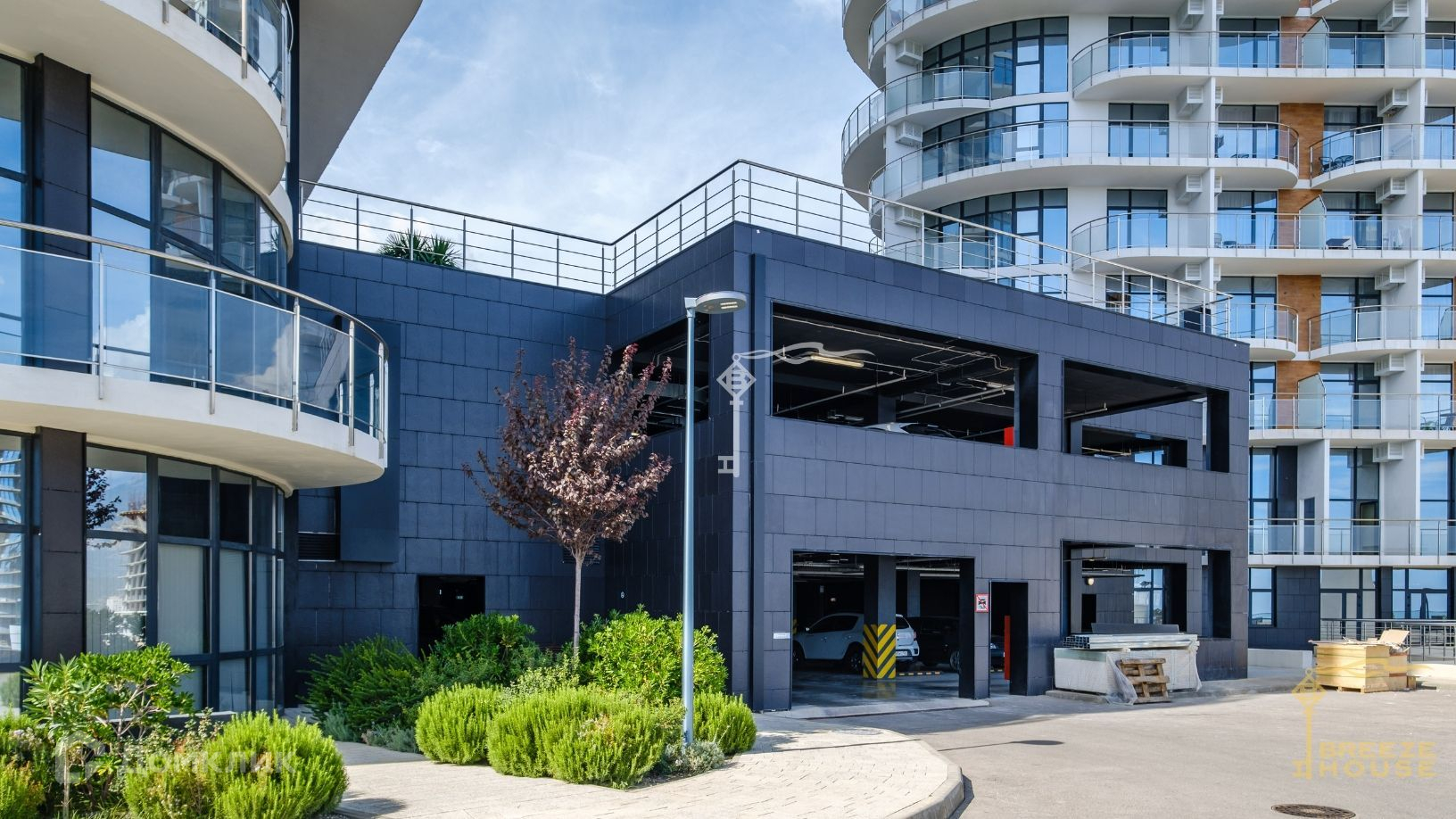 На территории комплекса предусмотрены бассейн, развлекательные зоны, фитнес-центр, паркинг и площадка для зоны BBQ.